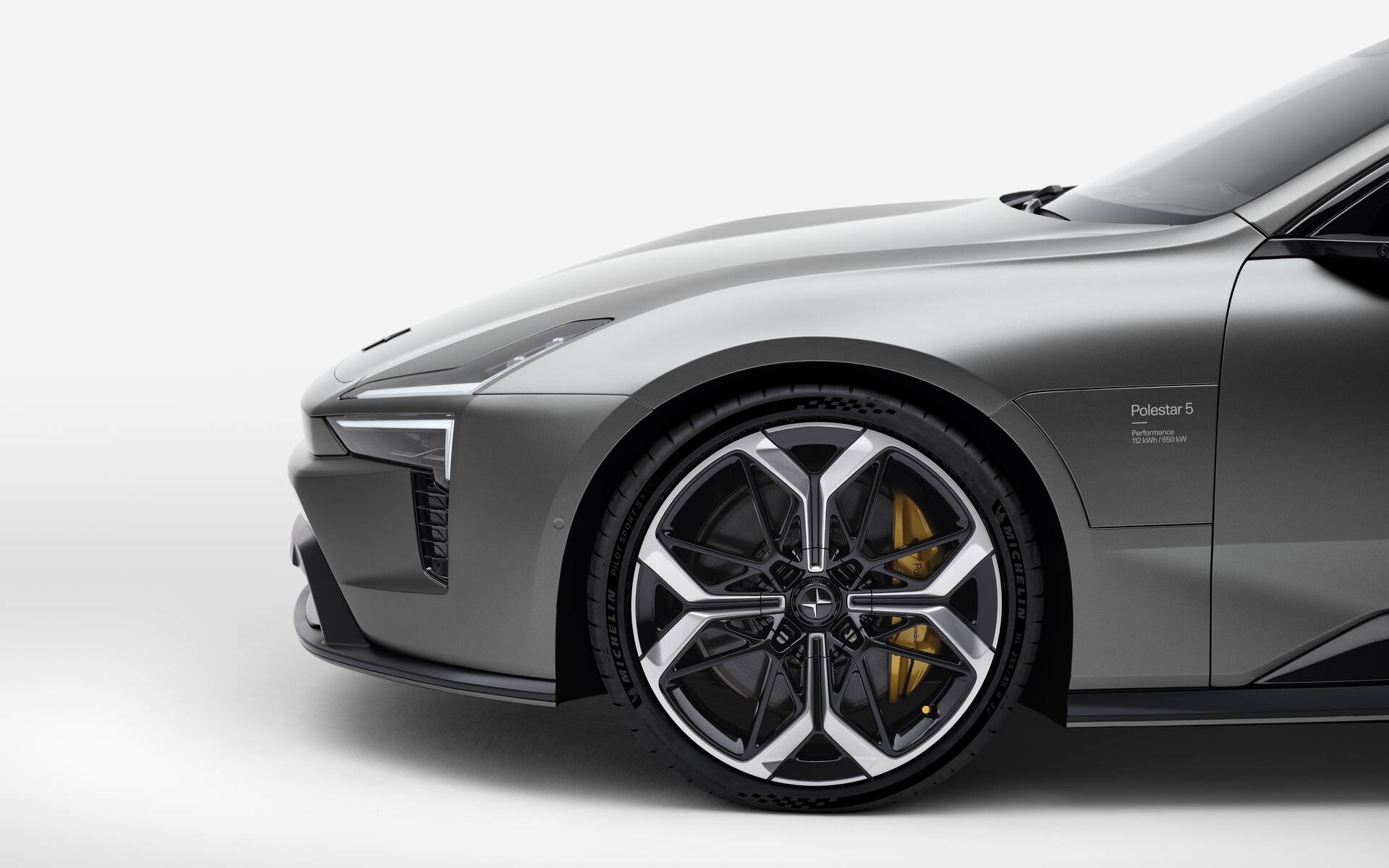 Par ailleurs, grâce à la « Polestar Performance Architecture » (PPA), la compagnie promet une rigidité en torsion supérieure à celle d’une voiture sport biplace. Le freinage est assuré par des étriers Brembo à quatre pistons à l’avant, identiques à ceux du Polestar 3, mais associés à des disques légers en deux pièces mesurant 400 mm. Ceux-ci permettent de gagner 12 kg par rapport au système de son frangin utilitaire.