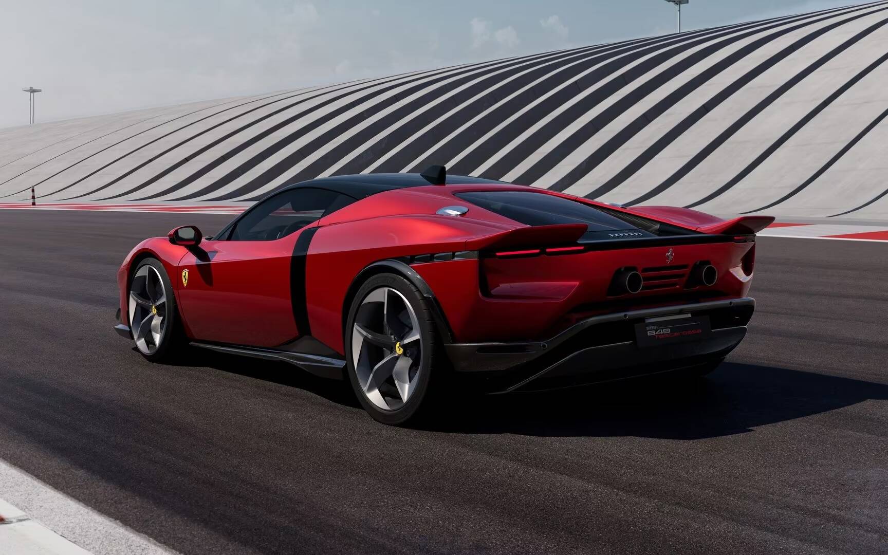 À l’arrière, les deux ailerons séparés et fixes rappellent certaines voitures sport et de course des années 1970, comme la 512 S, tandis que l’aileron mobile au milieu est inspiré de la SF90 Stradale et de la 296. Ce dernier fournit 100 kg (220 lb) d’appui à une vitesse de 250 km/h, pour un total de 415 kg (915 lb), soit 25 kg (55 lb) de plus que la SF90 Stradale. Pour ce qui est du poids, toutefois, les deux modèles sont identiques, ce qui est tout à l’honneur des ingénieurs de Ferrari.