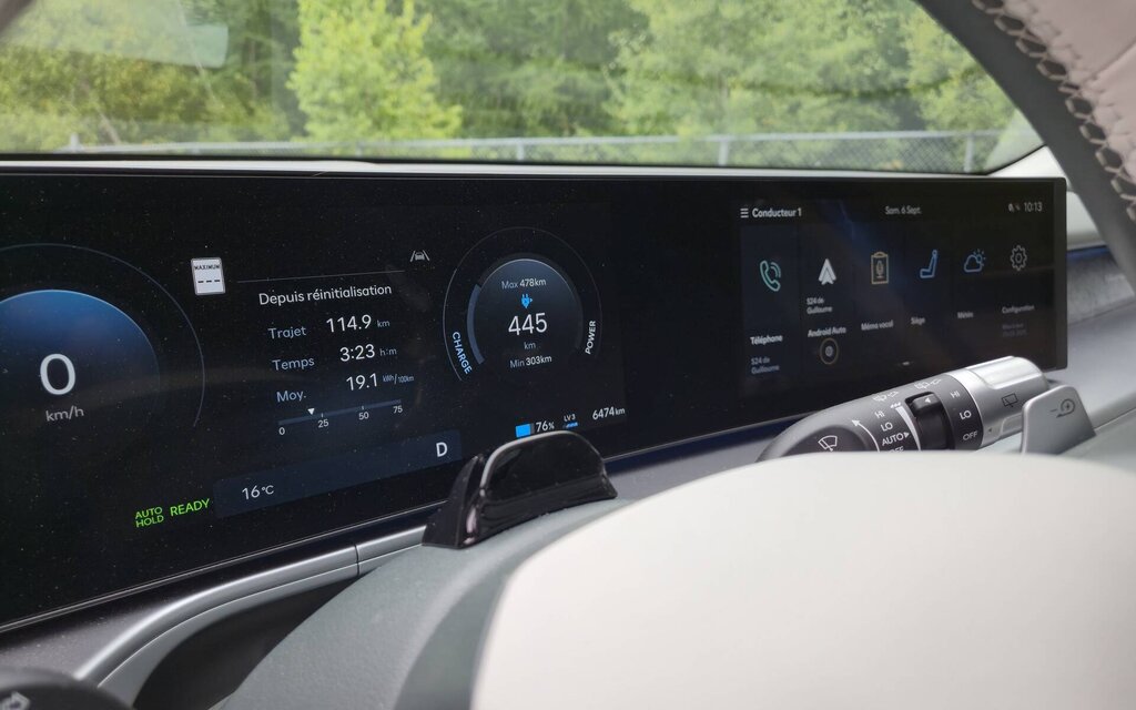 À propos de la recharge, l’architecture E-GMP du groupe Hyundai continue de favoriser des vitesses parmi les plus rapides de l’industrie. Pouvant extraire jusqu’à 235 kW, la grosse batterie de 110,3 kWh de l’IONIQ 9 (comparativement à 99,8 kWh dans l’EV9) peut ainsi remonter de 10% à 80% en 24 minutes… via l’une des rares bornes de 350 kW disponibles.