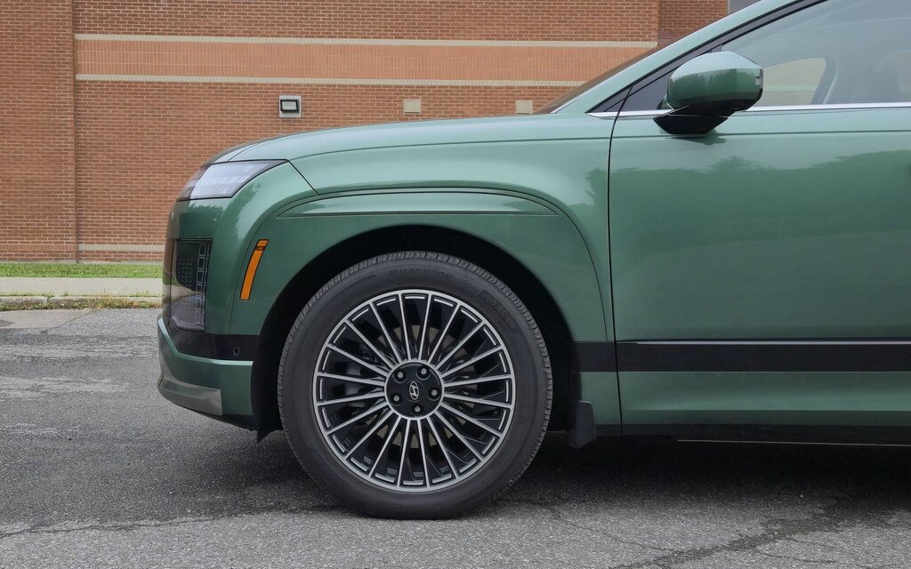 Les roues mesurent de 19 à 21 pouces selon la version et, sur une note pratique, les rails de toit et le hayon assisté figurent parmi l’équipement de série. Un mot sur les couleurs disponibles, car l’unique choix avec le modèle de base à propulsion (qui offre le maximum d’autonomie) ou même le modèle Preferred AWD+ est un affreux « Brun coucher de soleil ». D’un autre côté, l’option du Gris nocturne au fini mat avec les deux ensembles susmentionnés est fort intéressante et ce Vert ionosphère a le mérite d’être moins criard que le Vert Ocado du Santa Fe!