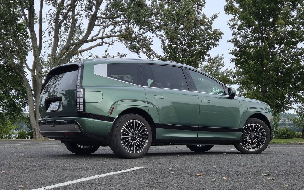 Notre exemplaire haut de gamme Preferred AWD+ avec ensemble Ultimate Calligraphy n’a pas laissé son poids de 2 729 kg et ses roues de 21 pouces nuire à l’expérience… ni à l’autonomie. Bon, les conditions météo étaient idéales, les déplacements sur l’autoroute se sont limités au tiers de l’essai et nous n’avons pas transporté ou tiré de lourdes charges. Mais que dites-vous d’une moyenne de 20,2 kWh/100 km alors que Ressources naturelles Canada annonce 24,7 pour ce luxueux IONIQ 9? Il nous aurait été possible de parcourir plus de 540 km en tout. D’ailleurs, l’ordinateur nous suggérait 544 km au terme d’une recharge complète. Impressionnant, il faut l’avouer.