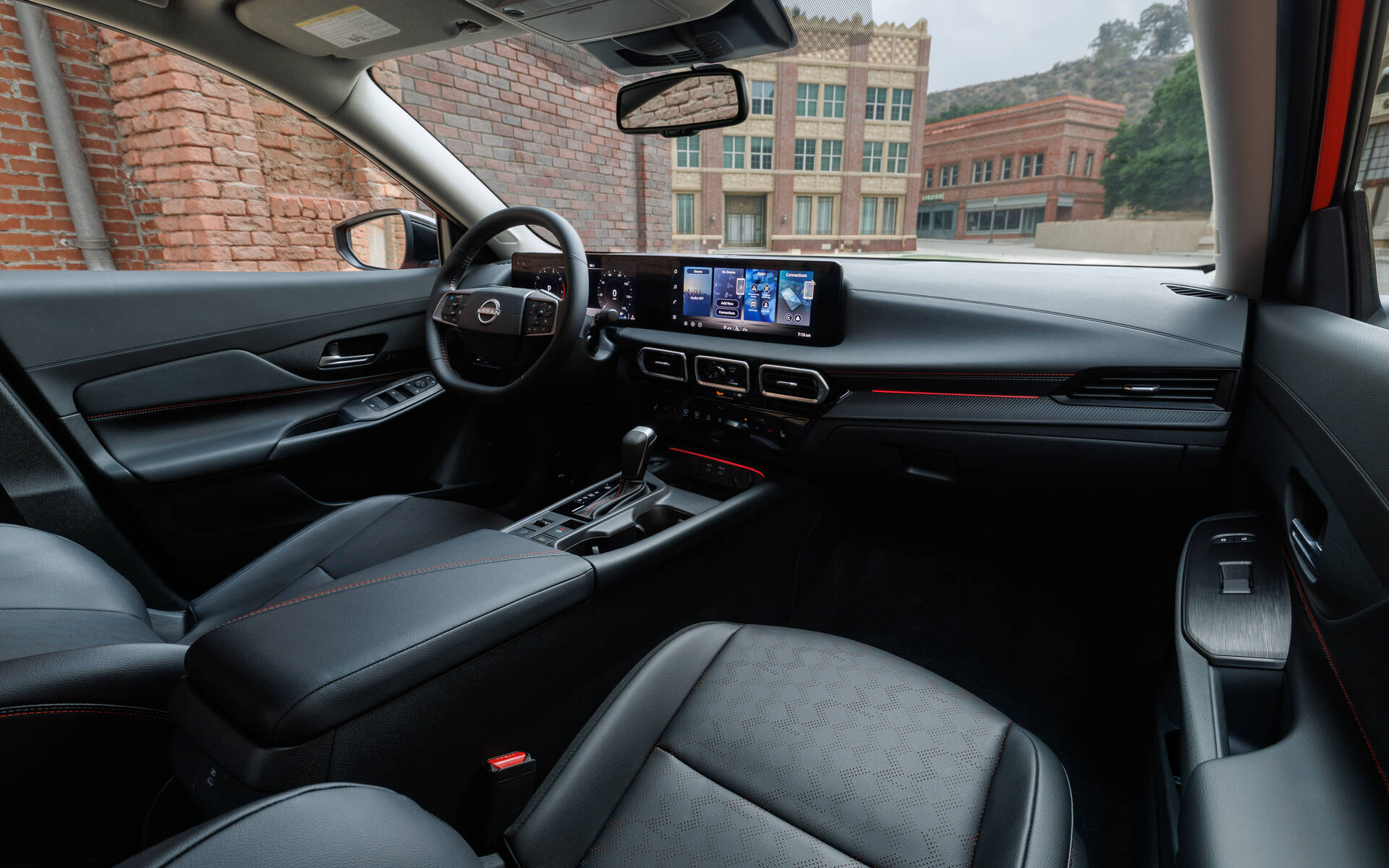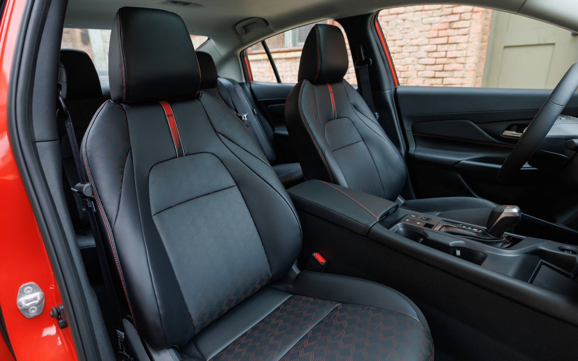 Sans surprise, l’habitacle de la Nissan Sentra 2026 met l’accent sur la technologie. Haut dans la gamme, c’est l’interface à deux écrans de 12,3 pouces qui domine le poste de pilotage. L’intégration d’Apple CarPlay et d’Android Auto est sans fil, excepté dans la moins chère des Sentra. Un chargeur sans fil pour téléphone est désormais disponible, sinon les trois ports USB-C feront l’affaire.