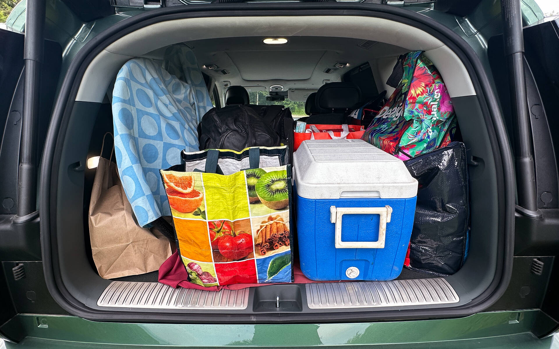 Franchement, on n’en demandait pas tant! Je me suis même inquiété en constatant qu’en plus du beau Vert ionosphère de la carrosserie, Hyundai avait choisi l’habitacle bicolore, avec ses vastes surfaces couleur crème pour les sièges et les contre-portes. De quoi impressionner les voisins, à coup sûr. Pour ma part, j’ai pensé aux deux préados qui allaient nous accompagner en balade et à la petite dernière qui est très douée pour le bricolage et la gestion fantaisiste des ressources alimentaires. Sans oublier le bagage excédentaire que l’on allait transporter dans un coffre trop pâle. Y compris un vélo. Je vous rassure immédiatement, ça s’est bien passé.