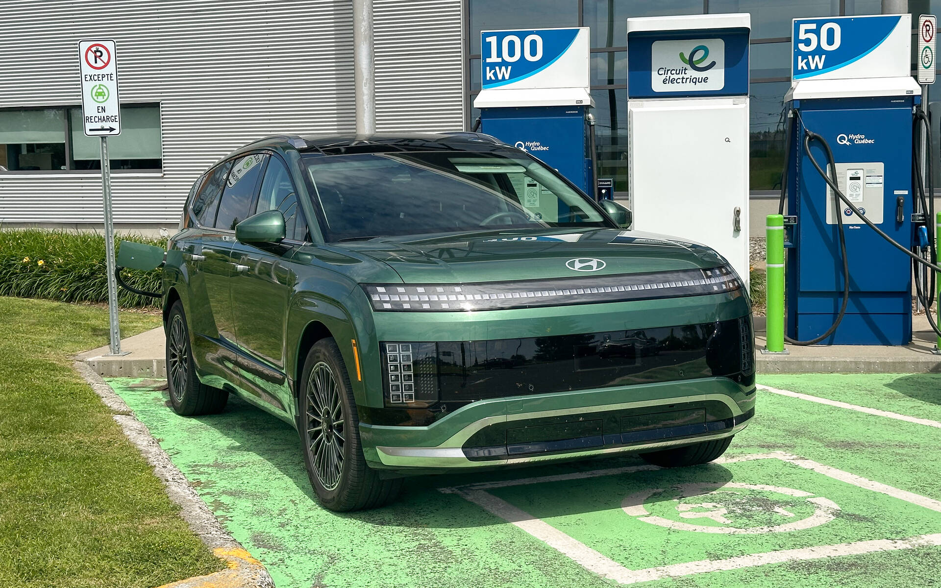 Dommage que les bornes à 320 kW flambant neuves du Circuit électrique à La Malbaie aient obstinément refusé de coopérer. Je n’ai pas croisé, non plus, une seule de ces bornes à 350 kW qui jouent les licornes chez nous. Hyundai y promet une recharge de 10 à 80% en 24 minutes. J’ai quand même vu une pointe de 72,2 kW en recharge sur une borne de 100 kW à Bernières et de presque 130 kW sur une borne à 150 kW. Merci, encore une fois, à Performance Ford de rendre ses appareils accessibles à tous les électromobilistes de passage, à La Malbaie.