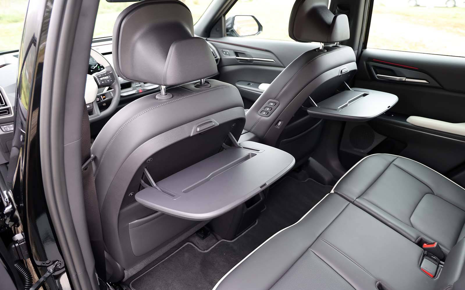 La version mise à l’essai était un modèle GT-Line avec des feux à DEL distinctifs, de jantes de 19 pouces et un habitacle deux tons, mariant le noir et le crème. Une configuration non confirmée chez nous, mais visuellement très riche. Cela dit, nous savons que les modèles nous étant destinés seront livrés de série avec jantes de 18 pouces et qu’ils bénéficieront de série de ces deux écrans superposés de 12,3 pouces, séparés par un troisième écran de 5 pouces destiné aux commandes de chauffage/climatisation. Une formule identique à celle de l’EV9, où le cercle du volant vient gêner la visibilité du petit écran. Or, il s’agit sans doute du seul reproche ergonomique qui puisse fait au EV5, qui propose sinon une multitude d’espaces de rangement, une console flottante bien pensée, sous laquelle loge un tiroir accessible par l’arrière. Le système V2L permettant la recharge d’accessoires depuis la batterie haut voltage du véhicule sera aussi offerte, les études ayant prouvé que les acheteurs en font bon usage.