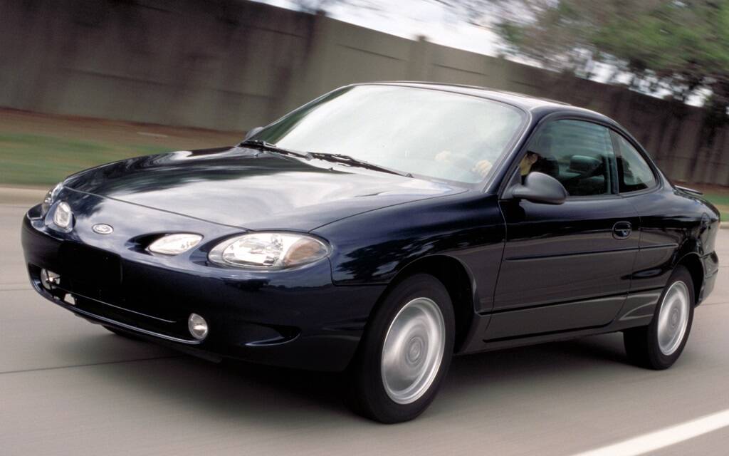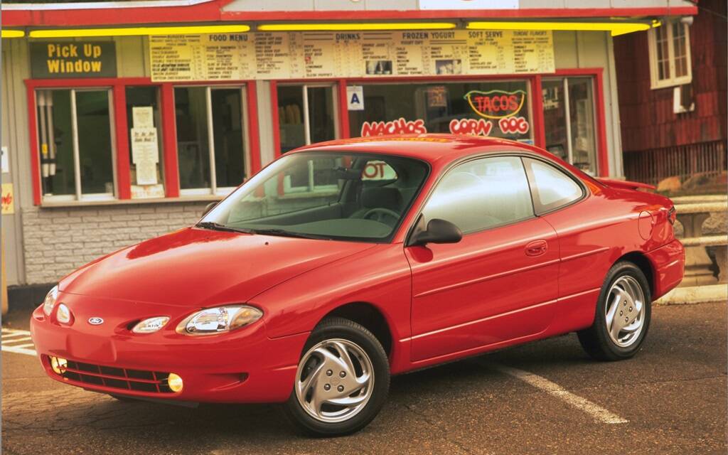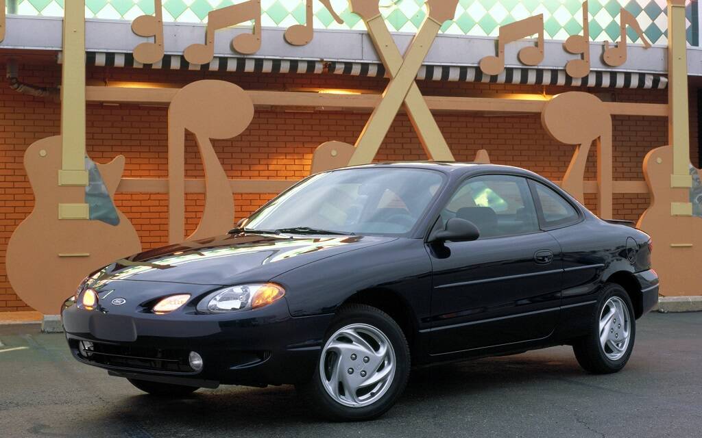 C’est donc au millésime 1998 que Ford lance une variante coupé de son Escort : la ZX2. Avec son style unique, elle rappelle effectivement les EXP et LN7… mais avec une banquette arrière. Là encore, on retrouve une certaine influence de la Taurus 1996. La face avant intègre quatre phares séparés spécifiques. Pas de hayon à l’arrière mais une ouverture de coffre classique. Si les lignes sont originales, on ne peut pourtant pas dire qu’elles soient sportives. L’empattement reste le même que celui de l’Escort (2,50 m) mais les cotes d’habitabilité sont légèrement en baisse par rapport à la berline, tout comme le volume de chargement (334 litres contre 362).