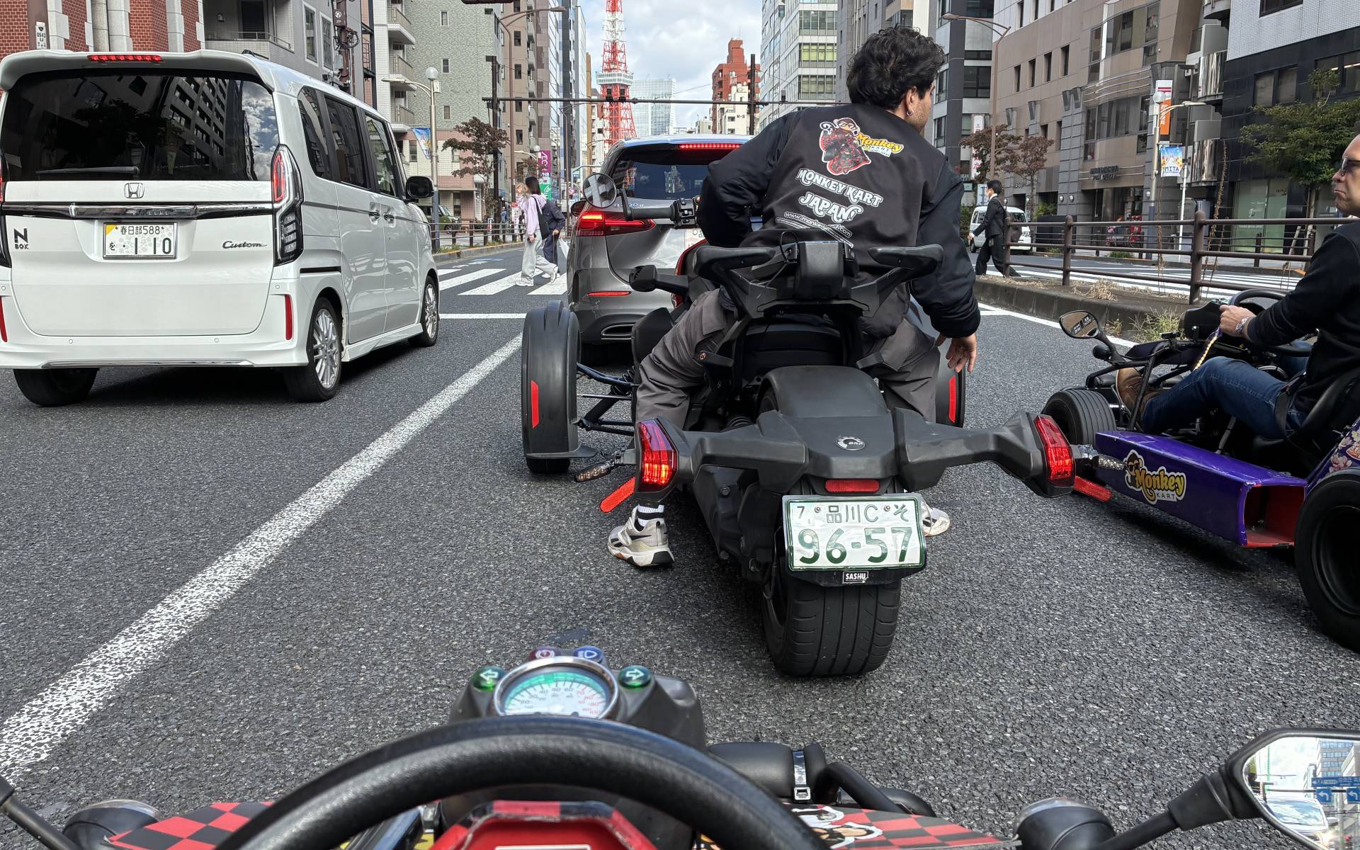 Guidés dans les rues de Tokyo par un instructeur juché sur un Can-Am Ryker, nous arpentons les rues au volant de nos petit bolides. Le Japon n’est pas le pays qui compte le plus de grosses voitures, loin de là, mais même la plus minuscule des kei cars nous semble immense puisque nous sommes au ras du sol! Le fait d’être assis aussi bas et sans casque fait aussi en sorte que la sensation de vitesse est décuplée. Nous avons poussé le véhicule à 60 km/h au maximum, mais nous aurions juré que c’était bien plus!