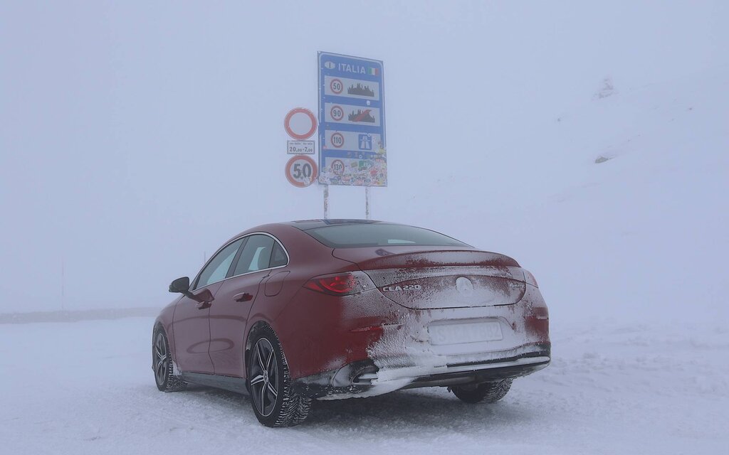 Pour terminer, Mercedes-Benz a fait rouvrir un col de montagne à cheval entre l’Autriche et l’Italie, fermé à la circulation pour l’hiver. Sans circulation, nous avons pu évaluer la qualité du rouage intégral 4Matic dans des conditions extrêmes. Globalement, ce dernier s’en est très bien sorti, bien aidé par les excellents Michelin Pilot Alpin 5 qui équipaient notre modèle d’essai.