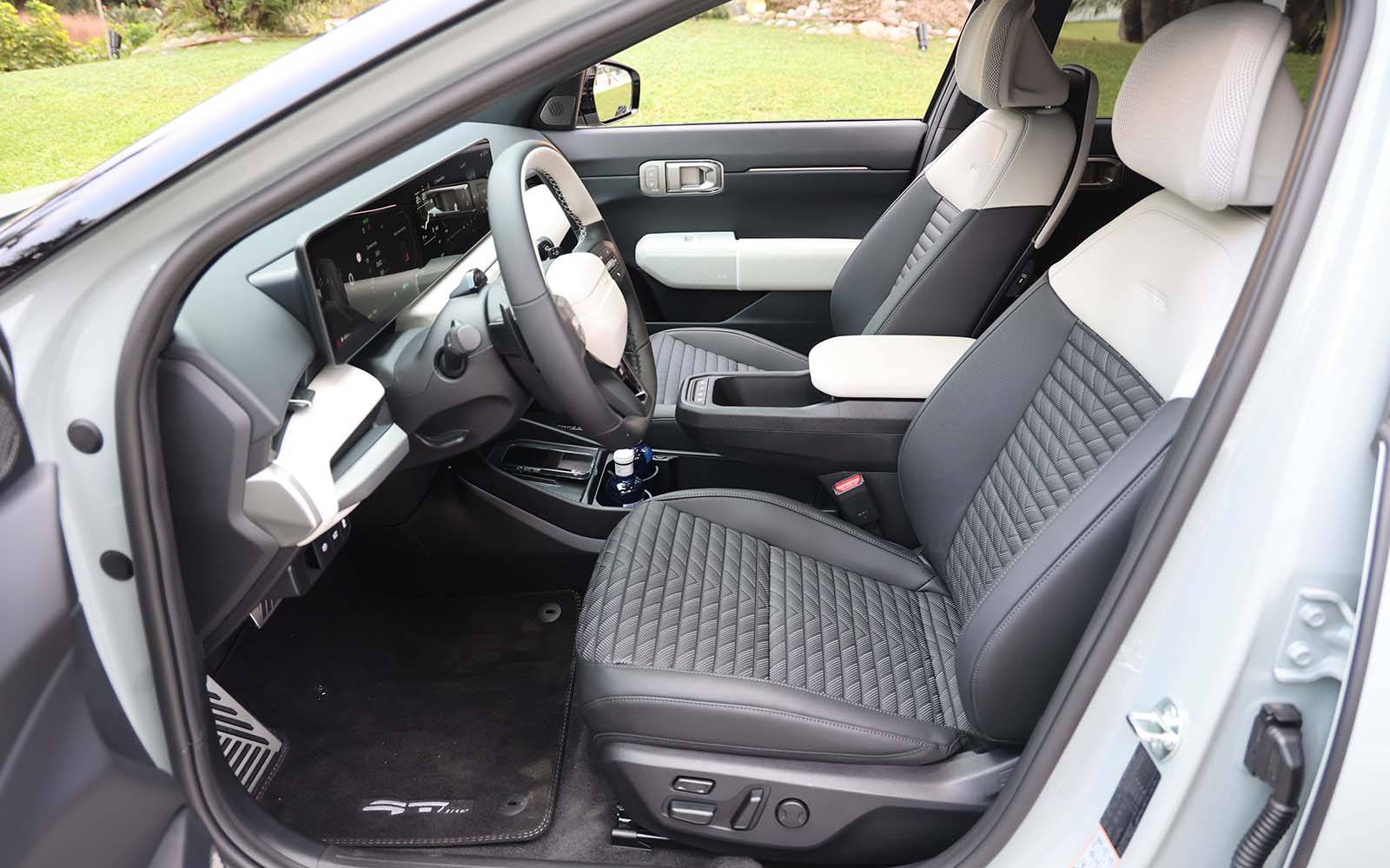 Sachez également que l’EV4 adopte sans surprise un port NACS, vous permettant de vous ravitailler sur le réseau de Superchargeurs de Tesla. Les modèles mis à l’essai en Espagne n’en étaient toutefois pas munis, étant bien sûr fabriqués selon les normes européennes et ayant par conséquent certaines petites distinctions. Par exemple, la version GT-Line était dotée d’un verre intimité qui, pour des raisons législatives, est indisponible au Canada, de même qu’un système d’affichage tête haute. Or, là s’arrêtaient grosso modo les différences. Nous avons donc découvert un produit très proche de celui qui arrivera dès février chez nos concessionnaires.