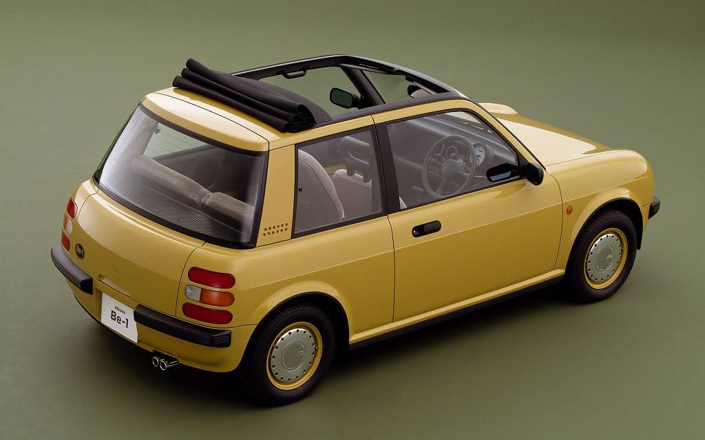Nous sommes en novembre 1985, au 26ième Salon de l’auto de Tokyo. Le Japon est dans des années fastes et Nissan y dévoile bon nombre de concepts : COM COM, Mid4, EV Resort, LUC-2 et CUE-X (une longue berline qui préfigure les lignes de l’Infiniti Q45 1990-96). Mais celui qui retient tout particulièrement l’attention de la foule est le Be-1, une petite auto qui semble dérivée de modèles européens de la décennie 60. Celle-ci est issue d’un concours interne de design afin de créer de nouvelles applications de la plateforme de la Nissan March (code interne K10).