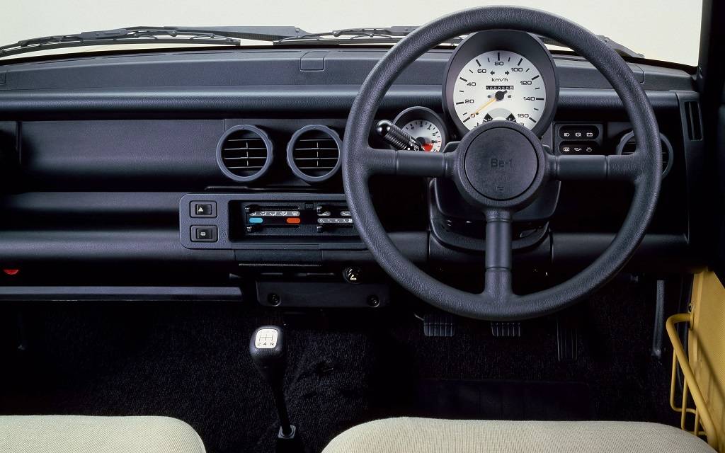 La partie mécanique est du pur March/Micra (voir tableau en fin de texte) avec des suspensions indépendantes à l’avant, un essieu rigide à l’arrière et une direction à crémaillère. Pour le lancement, Nissan a vendu des licences pour la création de nombreux produits dérivés et ouvrira même le « Be-1 Shop » pour les vendre. La Be-1 est n’est pas fabriquée sur la ligne d’assemblage d’une usine Nissan mais chez Takada Kyogo Co. Ltd, une entreprise de construction mécanique basée à Yokohama. Plusieurs éléments de carrosserie sont en « Flex Panel », une résine thermoplastique développée en collaboration avec General Electric.