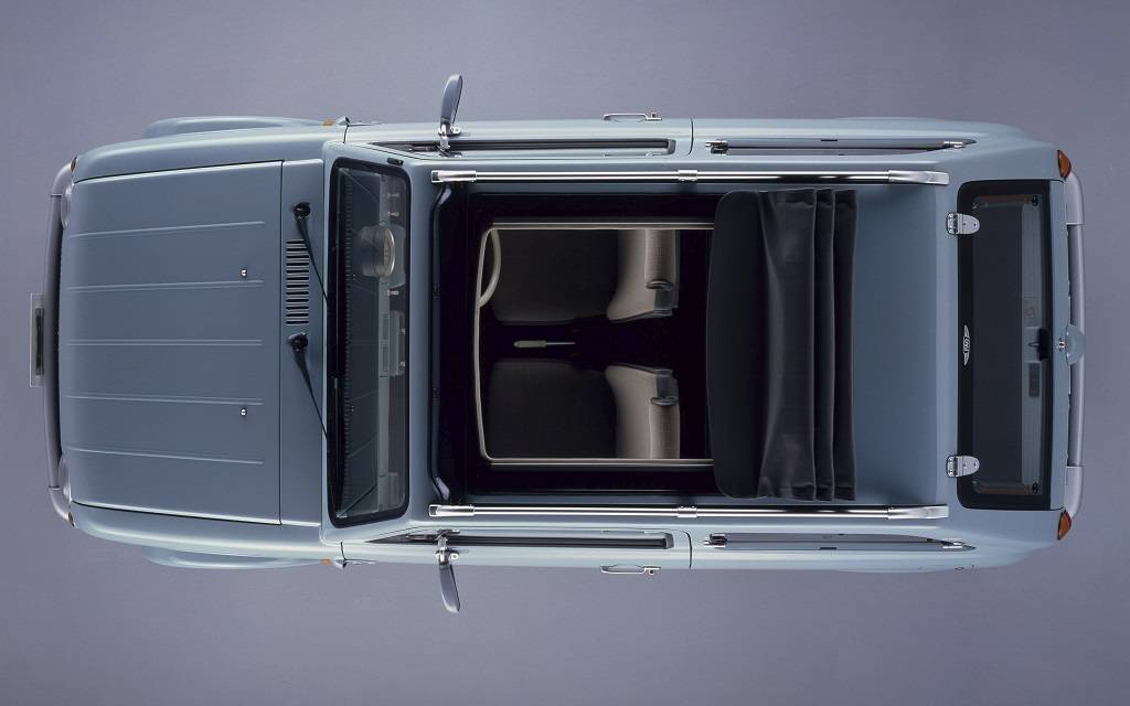 Les lignes ultra simples (il est possible d’ajouter un toit ouvrant en toile et une fenêtre ronde sur les côtés) se retrouvent aussi à l’intérieur, particulièrement dénudé et dont la banquette et le volant monobranche font, là aussi, penser à Citroën.