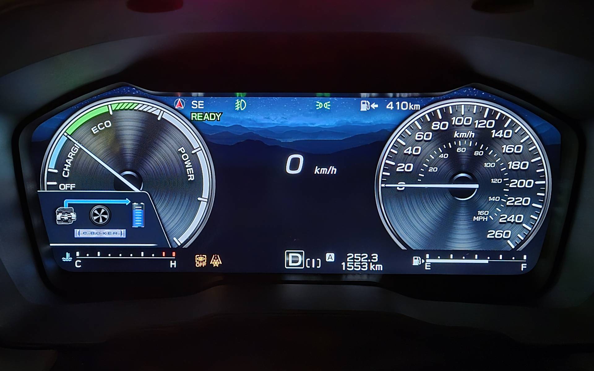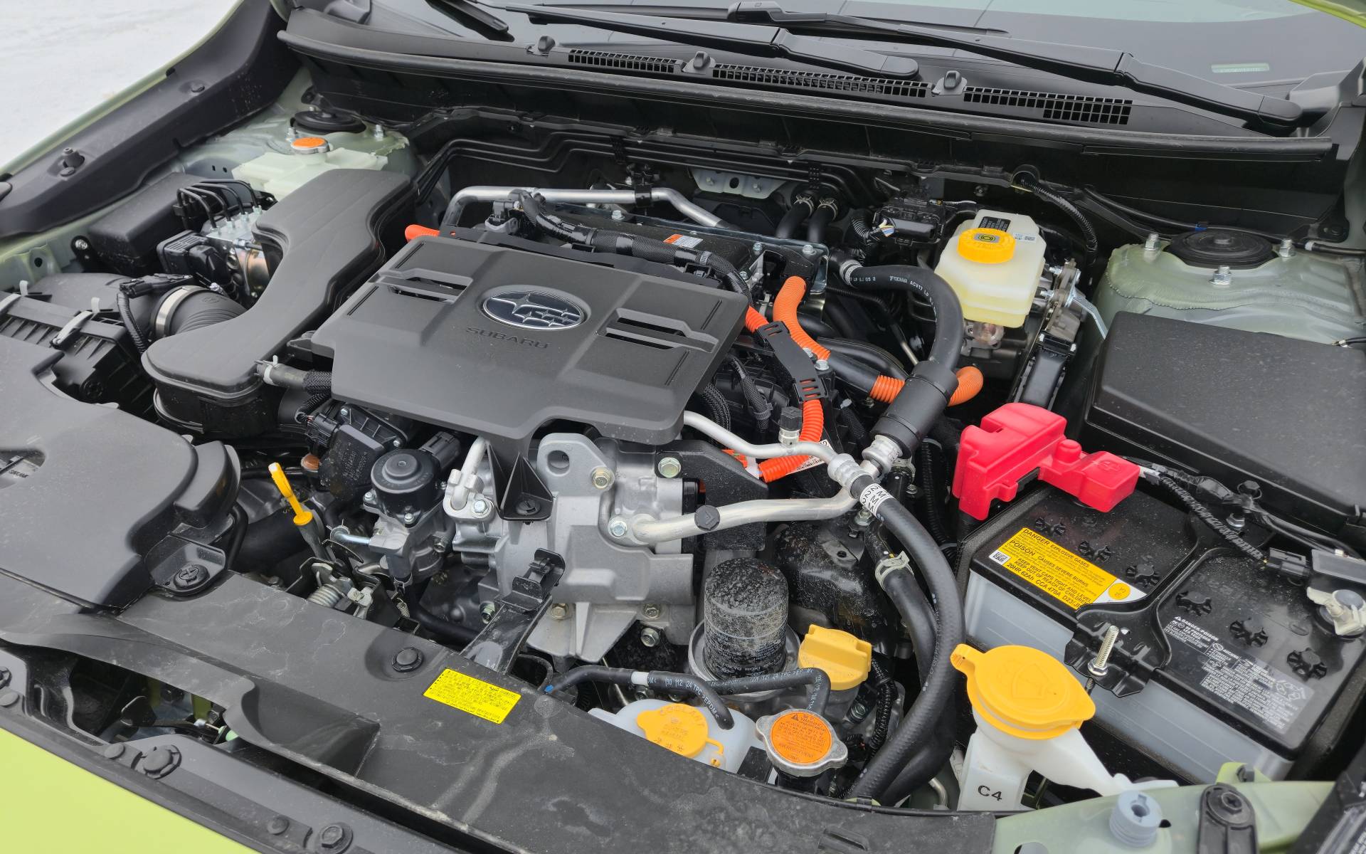 Le démarrage en silence et sans la vibration des quatre cylindres à plat ne dure pas tellement longtemps dans le froid. À propos, nos essais ont été réalisés à des températures variant à -20 à 4 degrés Celsius environ. Cela dit, une fois réchauffé, le véhicule opère de manière fluide et efficace, arrivant à rouler en mode électrique à une vitesse de croisière de 70-80 km/h.