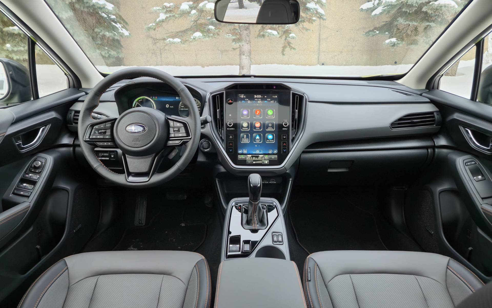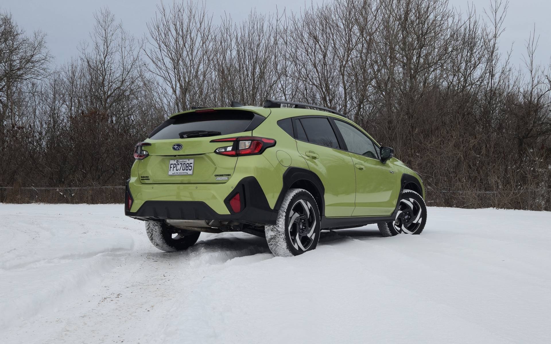 Si le surplus de poids de 142 kg (313 lb) par rapport à la version Limited se fait quelque peu ressentir, il n’affecte pas excessivement la qualité de la tenue de route et du freinage. Après une pluie verglaçante qui a transformé une vaste cour déserte en patinoire, nous nous sommes amusés à mettre le Crosstrek hybride à l’épreuve et celui-ci a continué de briller, étant facile à garder en contrôle et inspirant ainsi confiance au volant.