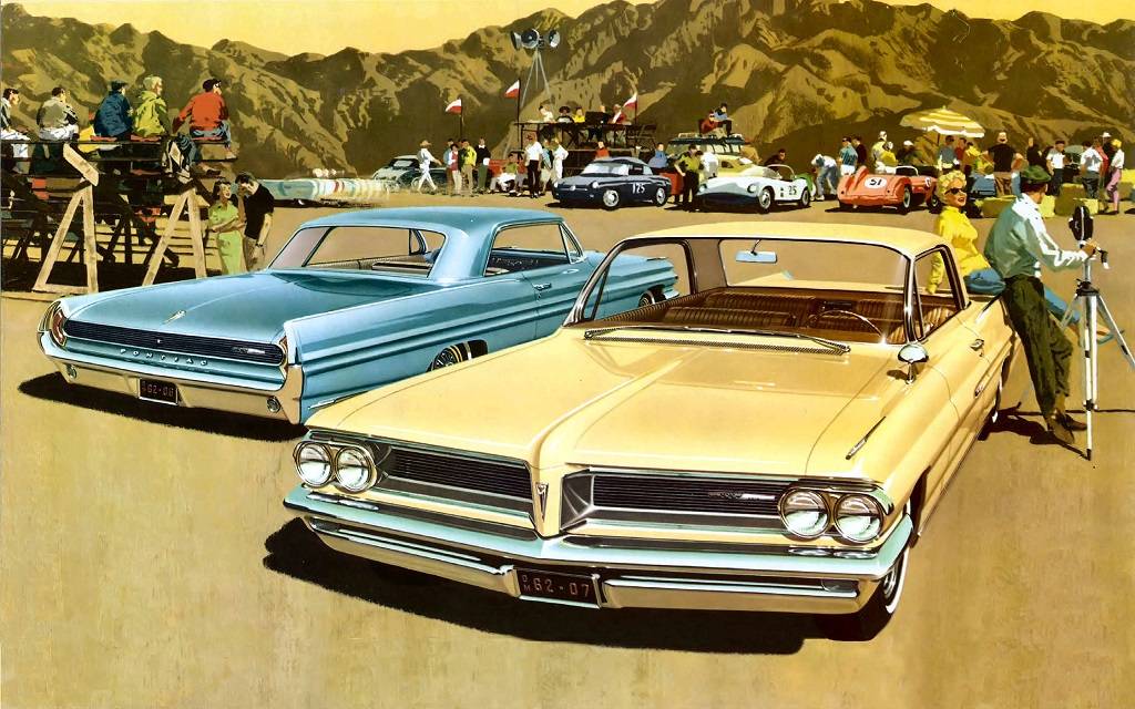 Mais la grosse nouveauté, c’est l’apparition sur la liste d’options officielle du bestial 421 pc (seulement 16 Grand Prix auraient reçu en 1962 ce V8 qui n’était pas au catalogue). Le magazine Motor Trend va réaliser un essai d’une Grand Prix avec le bloc de 370 chevaux et tomber quasiment en amour avec l’auto (surtout qu’elle est équipée de la suspension renforcée). Le 0 à 60 mph passe de 9,9 secondes avec le moteur de base à 6,6 secondes avec le 421. Quant au quart de mille, il est réalisé en 15,1 secondes contre 18,1 secondes pour le 303 chevaux.