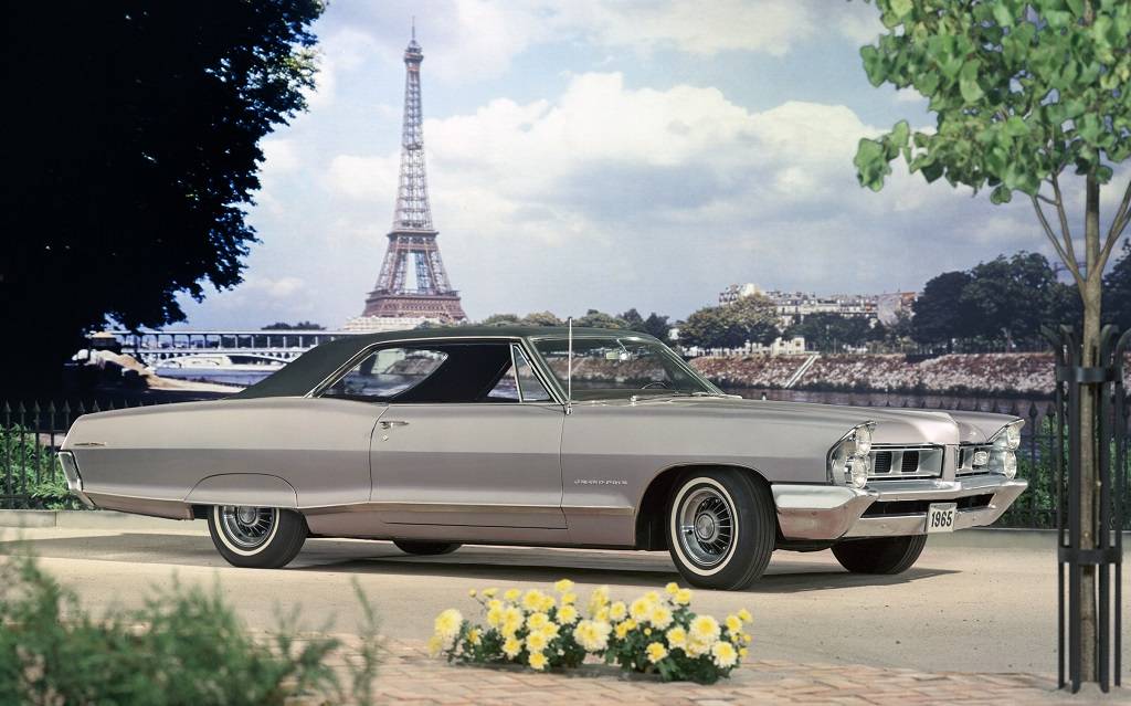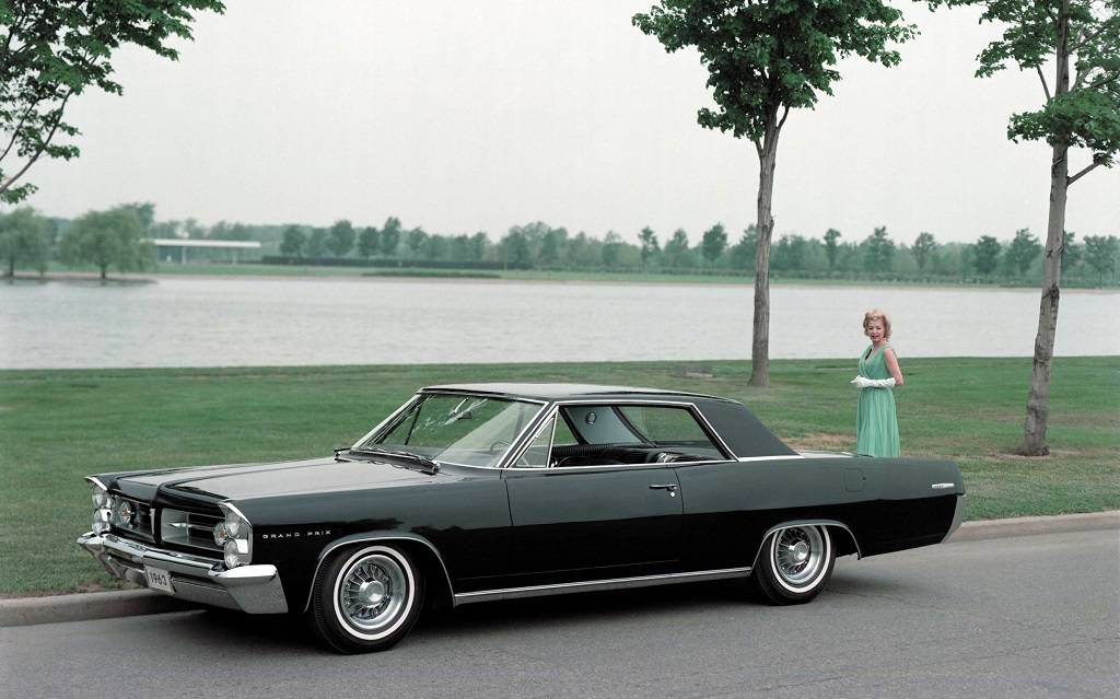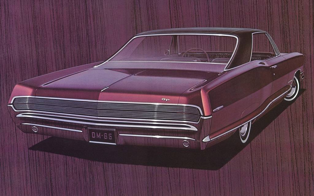 Pour le millésime 1965, les Pontiac sont entièrement redessinées… et avec quel brio! Les lignes sont plus sculptées, plus détaillées, les ailes arrière sont plus musclées avec un profil en « bouteille de coke ». La Grand Prix se distingue par ses grilles avec deux séparations verticales au lieu d’une horizontale. Les bas de caisse sont aussi traités différemment. Le châssis voit son empattement augmenter d’un pouce à 121 pouces. Si le choix des moteurs est essentiellement le même qu’en 1964 (avec des puissances revues), la grosse nouveauté se situe au niveau de la boîte automatique. La Roto Hydra-Matic des modèles 1962-64 est remplacée par la Turbo Hydra-Matic qui intègre un plus gros convertisseur de couple. Elle offre des passages plus en douceur et peut, sur la Grand Prix, être commandée manuellement.