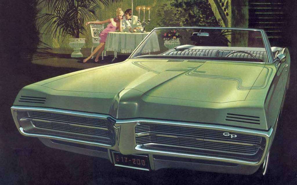 Les modèles 1968 bénéficient d’une nouvelle calandre avec un bec central en chrome très proéminent. Là encore, la Grand Prix reçoit des faciès avant et arrière exclusif (phares escamotables à l’avant, feux arrière intégrés dans le pare-chocs). Mais cette fois-ci, la sauce ne semble pas prendre et la GP paraît pataude, lourde sur ses roues.