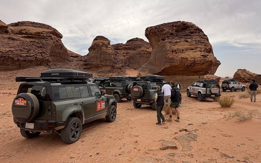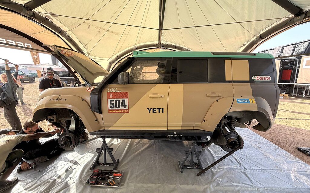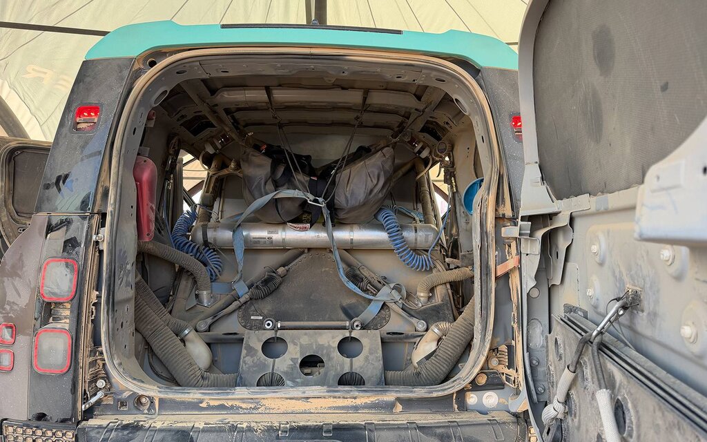 Land Rover nous a donc conviés en Arabie saoudite afin d’assister au rallye Dakar. Un événement légendaire dans lequel s’implique cette année le constructeur, à travers une nouvelle compétition dans la catégorie. Les Defender D7X-R prenant part à l’épreuve n’ont rien à voir avec le modèle que vous achèteriez en concession. Certes basés sur la version Octa, ils voient néanmoins leur puissance réduite, leur suspension modifiée, leur habitacle sérieusement retravaillé et leur système de refroidissement complètement revu. Et les pneus? Là aussi, c’est autre chose. Ajoutons qu’un réservoir d’essence de 550 litres est logé à l’arrière, expliquant à lui seul les changements apportés à la suspension qui, d’ailleurs, ont été modifiée en cours de compétition.
