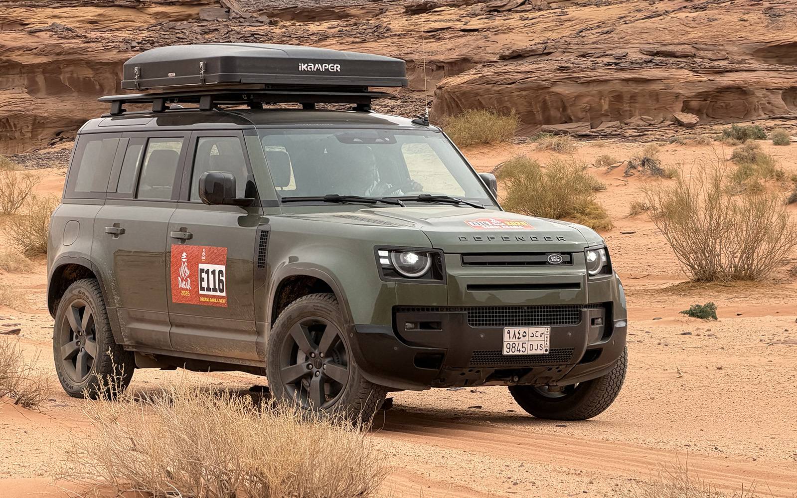 Land Rover nous a donc conviés en Arabie saoudite afin d’assister au rallye Dakar. Un événement légendaire dans lequel s’implique cette année le constructeur, à travers une nouvelle compétition dans la catégorie. Les Defender D7X-R prenant part à l’épreuve n’ont rien à voir avec le modèle que vous achèteriez en concession. Certes basés sur la version Octa, ils voient néanmoins leur puissance réduite, leur suspension modifiée, leur habitacle sérieusement retravaillé et leur système de refroidissement complètement revu. Et les pneus? Là aussi, c’est autre chose. Ajoutons qu’un réservoir d’essence de 550 litres est logé à l’arrière, expliquant à lui seul les changements apportés à la suspension qui, d’ailleurs, ont été modifiée en cours de compétition.
