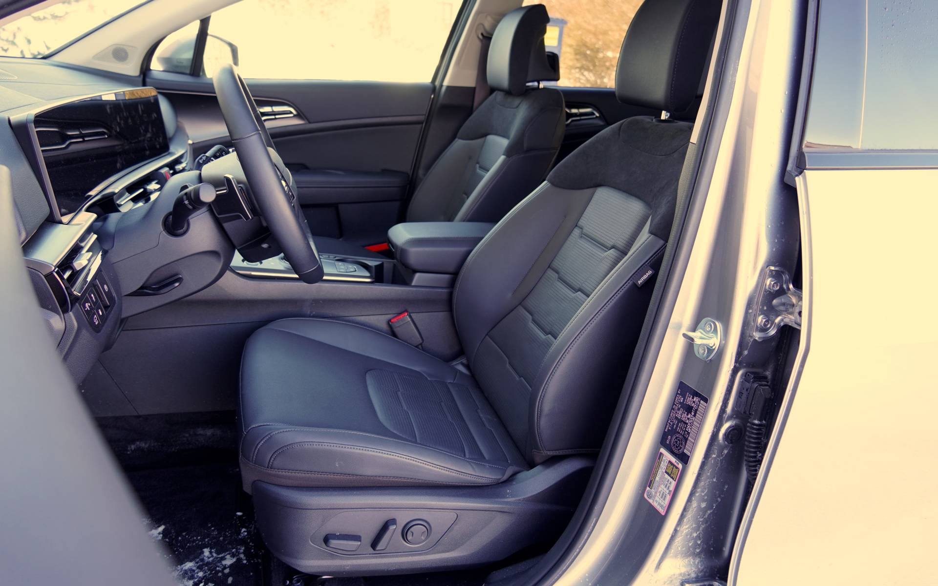 Mais, la recette coréenne, qui consiste à « bourrer » un véhicule de tout ce qui est disponible — ou presque — dans le catalogue de la marque s’applique aussi au Sportage le plus cossu. Sellerie en cuir synthétique chauffante aux deux rangées et ventilée à l’avant, volant chauffant à base aplatie, écran d’information derrière le volant et écran tactile au centre, affichage tête haute, jantes de 19 pouces, phares aux DEL, antibrouillards, finition satinée à l’extérieur, mémorisation de la position du siège conducteur, chaîne audio Harman Kardon, clé numérique, ainsi qu’une suite d’aides à la conduite complète, le Sportage PHEV SX 2026 n’a pas vraiment de complexes face à des modèles vendus plusieurs milliers de dollars supplémentaires.