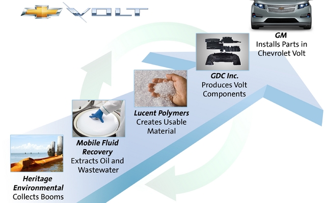 Le plastique imprégné de pétrole des barrières flottantes employées pour récupérer le pétrole dans le Golfe du Mexique trouve une seconde vie dans les pièces automobiles de la Chevrolet Volt.
