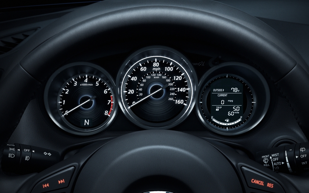 Official fuel consumption for the 2013 CX-5 is also being announced today by Mazda Canada, as rated by Transport Canada. The CX-5 offers the best highway fuel economy of any SUV sold in Canada at 5.7 litres per 100 km, outperforming many hybrids. Front-wheel-drive models equipped with the standard SKYACTIV-MT six-speed manual transmission are rated with a fuel economy of 7.8 L/100km in the city and 5.7 L/100km on the highway. When equipped with the optional SKYACTIV-Drive six-speed automatic transmission, front-wheel-drive models receive a fuel consumption rating of 7.7/6.1 L/100km. SKYACTIV-Drive is standard on all-wheel-drive models, which return an estimated fuel economy rating of 8.0/6.4 L/100km.