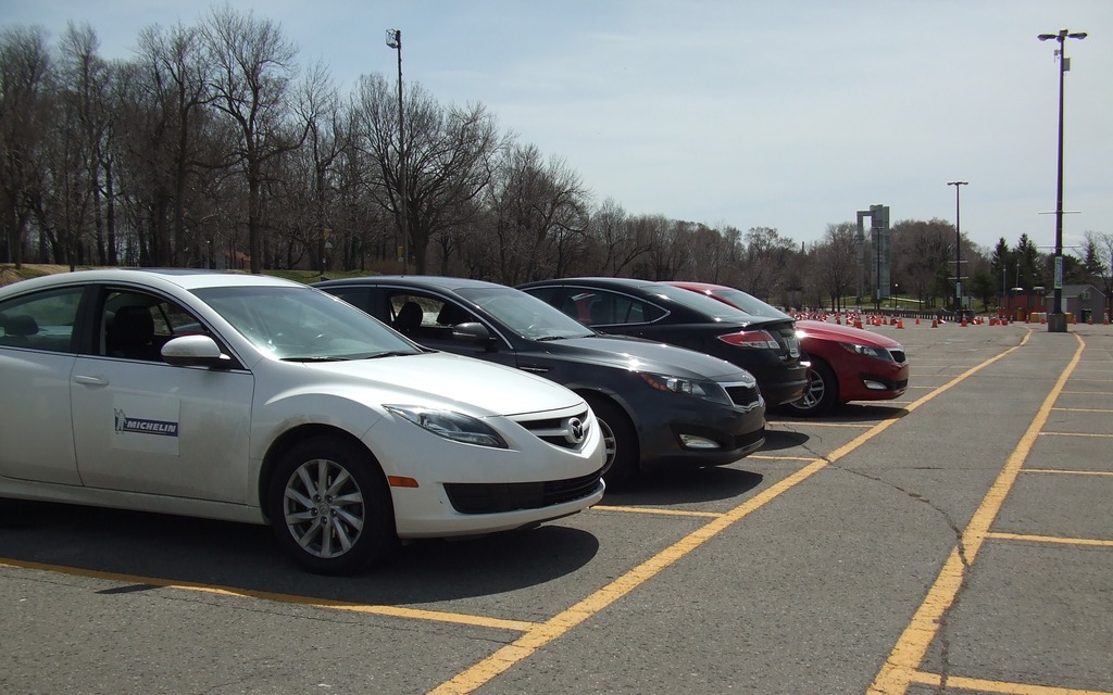 We then take the Premier A/S –equipped car. The difference is easily discernable in the first seconds… Especially since those first instants are spent accelerating to 80 km/h, and then slamming the brakes! The tires stay firmly planted on the ground, and record much shorter stopping distances than the competition. They are also very stable in the sharp S-shaped turns, easily transitioning from left to right. They are in fact so planted in turns that this journalist thought he was a real race driver… Just before a close encounter with a cone!