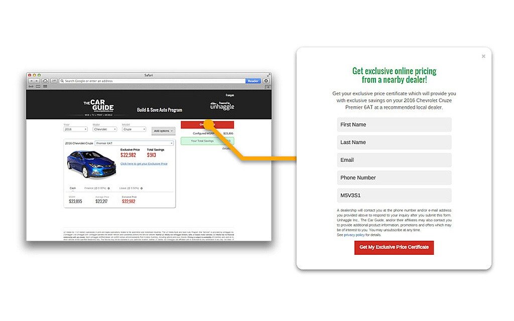 Step 3: If you’re satisfied with the deal and want to accept the price, click “Get this deal” and enter your contact information.