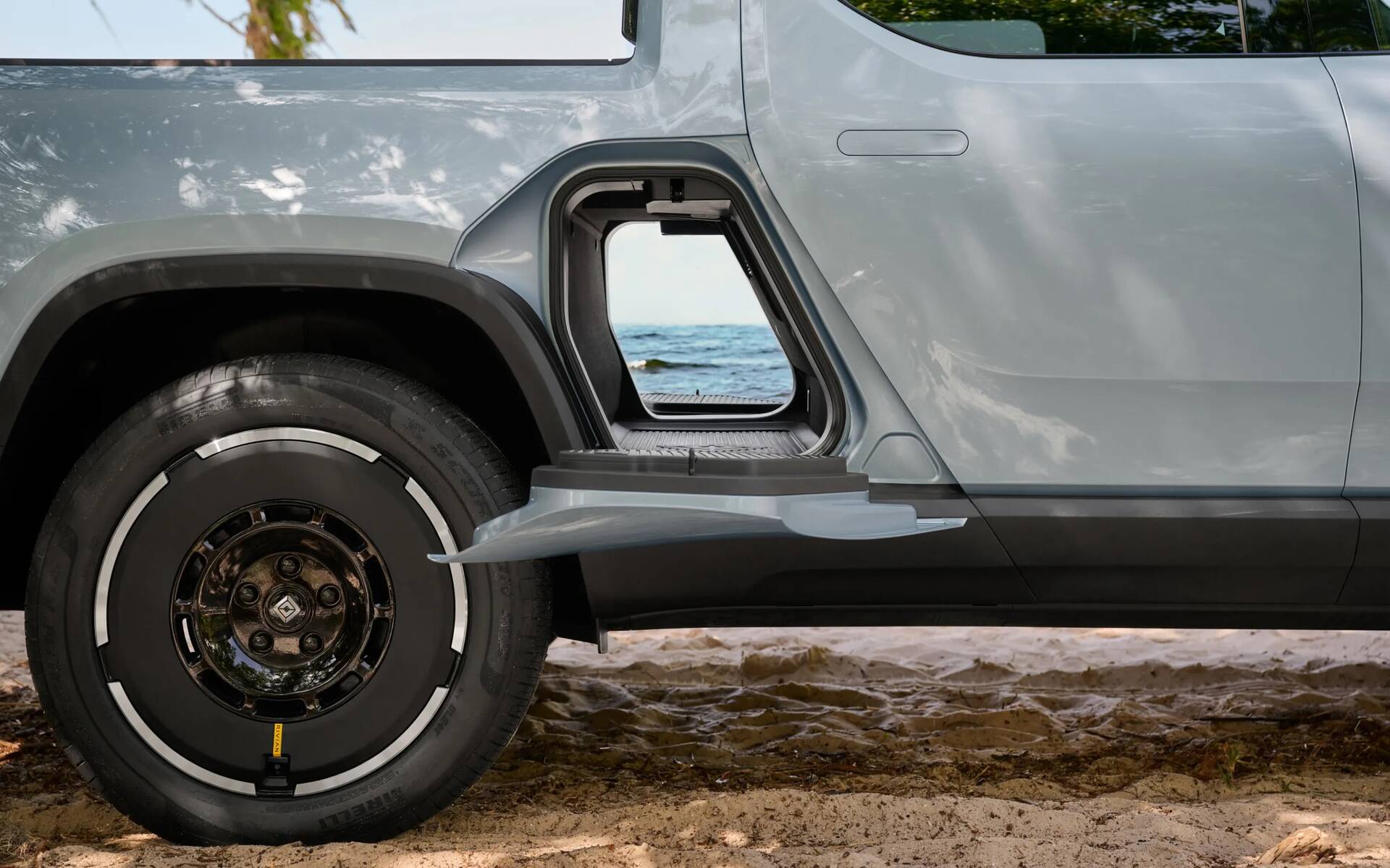 Significant upgrades for 2025 include the heat pump and suspension components. Range is between 435 km and 676 km, depending on the model. When it comes to work, the R1T can tow from 7,700 lbs to 11,000 lbs. The cargo bed measures just 4.5 feet long, but it can be extended to 7 feet by lowering the tailgate.