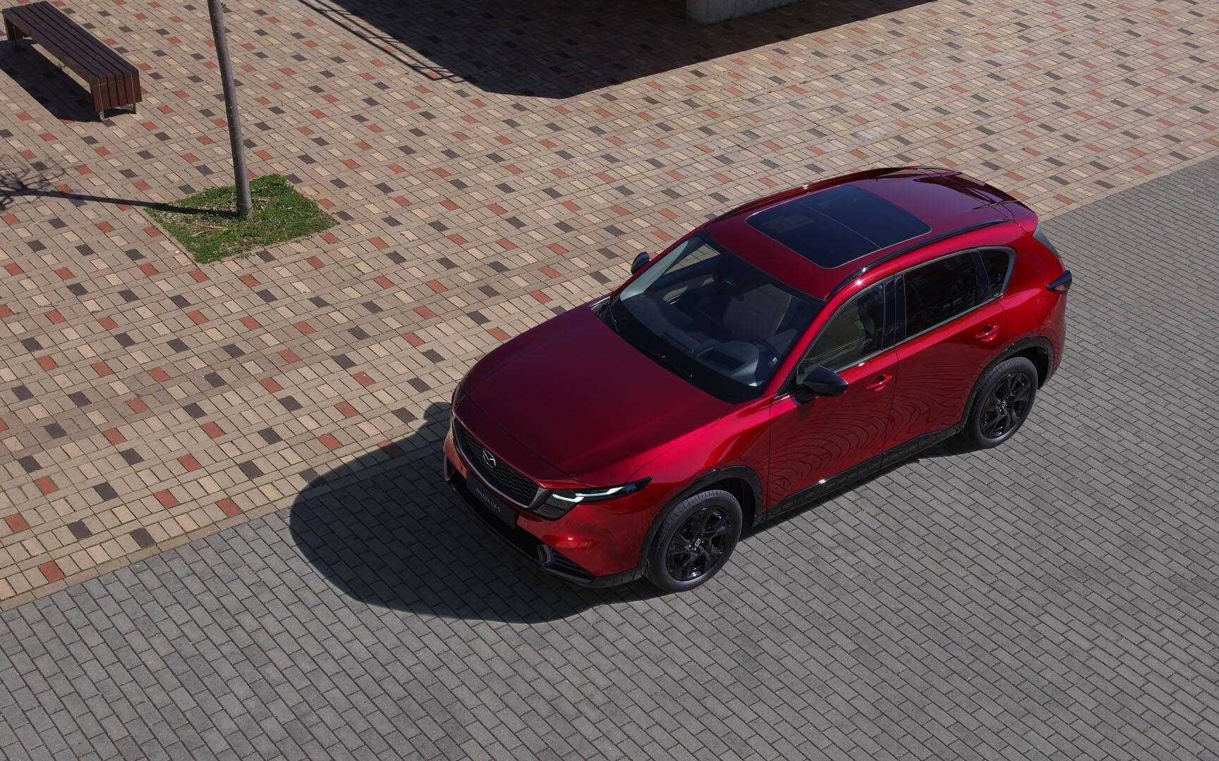 A new headlamp signature and redesigned bumper highlight the front end, enhancing the CX-5's appearance. The model in the pictures sports beautifully redesigned 19-inch wheels with a gloss black finish (18-inch wheels will also be available). At the rear, the more angular taillamps stretching towards the middle of the liftgate are reminiscent of the CX-70 and CX-90, except that the logo is replaced by “MAZDA” lettering—a first for the Japanese brand.