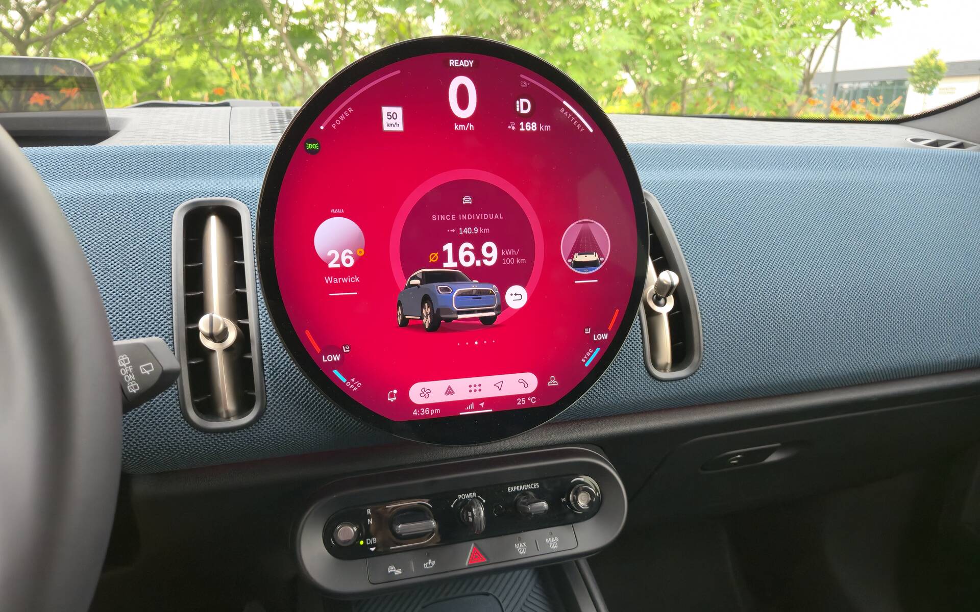Driving dynamics change based on the MINI Experience modes, new for 2025. Core is the default mode, Green prioritizes smoothness and fuel economy (with a drawing of a hummingbird or feline on the screen to tell you how efficient your driving is), but Go-Kart is our favourite. The latter makes steering sharper and improves throttle response while displaying key performance data. Naturally, it drains the battery faster.