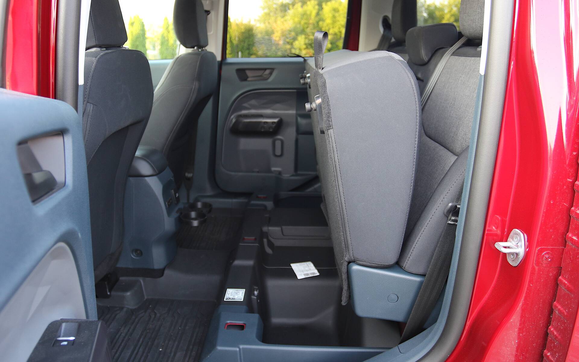 Two adults can sit comfortably up front. Space is very decent in the back, although a bit more legroom would be nice. Headroom is excellent at all seating positions, and the rear bench flips up so you can load items into the cabin that need to be protected from the elements. Too bad the bench doesn’t feature a 60/40 split for extra convenience.
