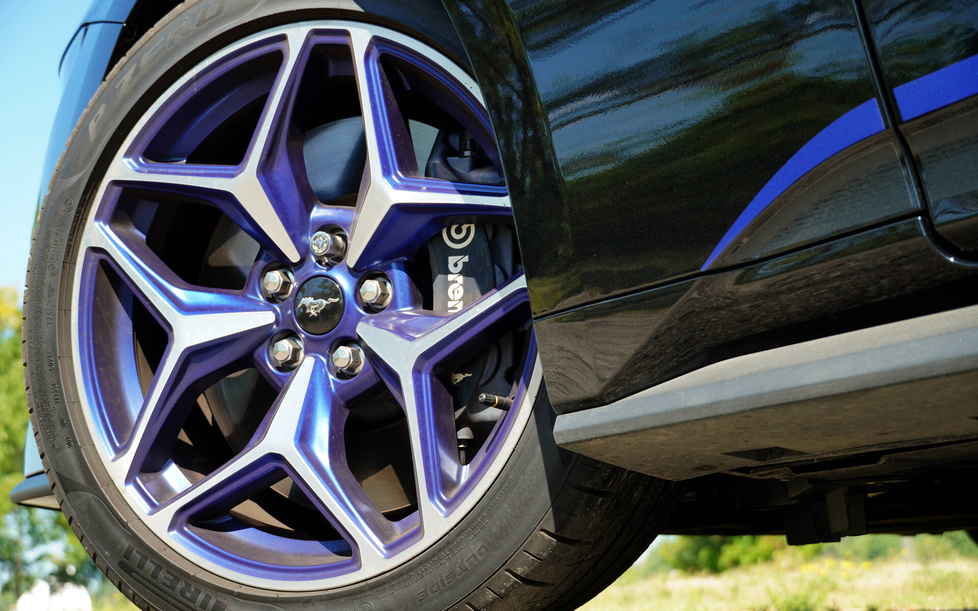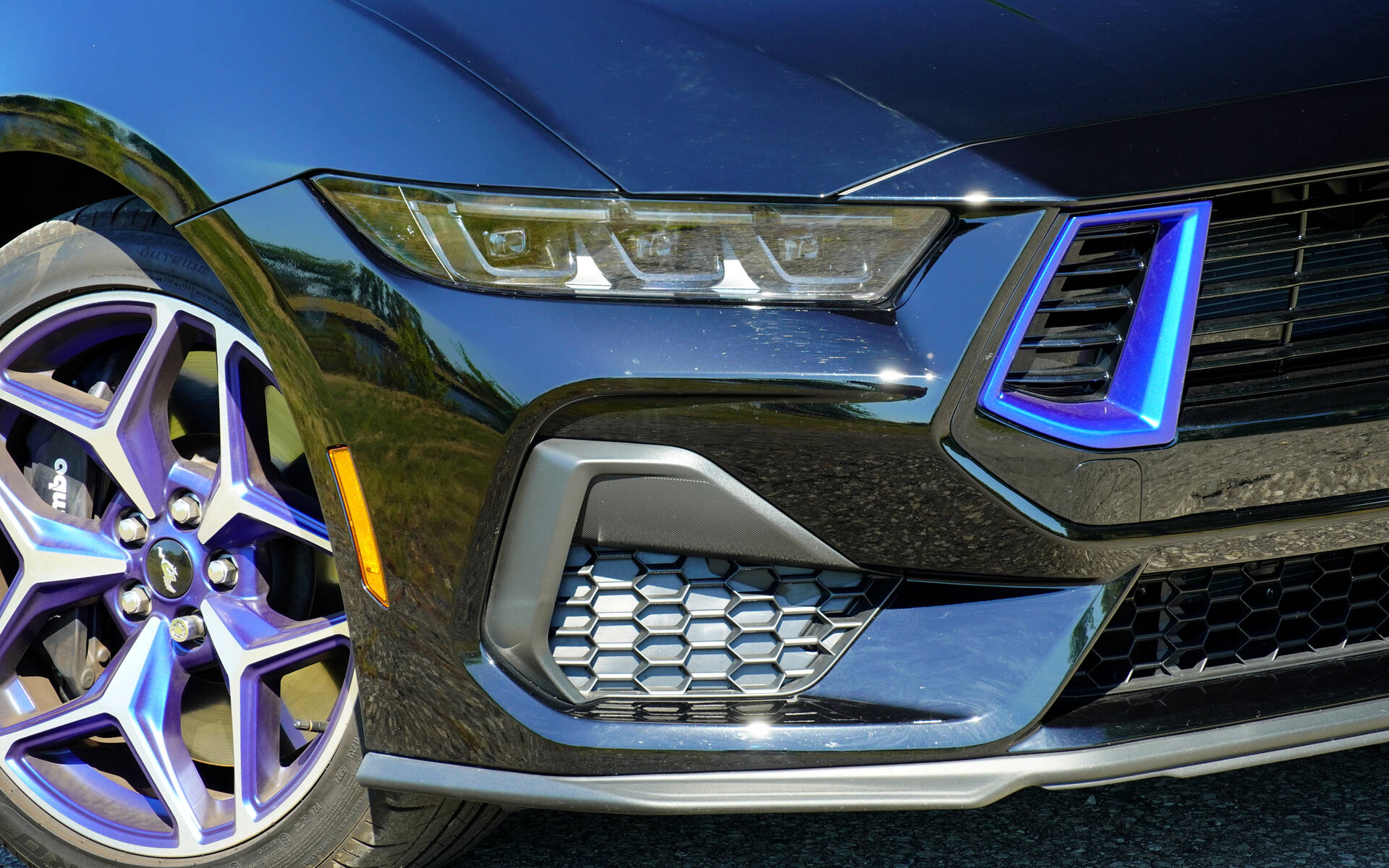 Let’s start with what the California Special package brings to the table. Priced at $2,700 (and only available on GT Premium models), it includes 19-inch carbonized gray wheels as standard. Since our test car also featured the GT Performance Package, it came fitted with wider machined aluminum wheels featuring Rave Blue inserts.