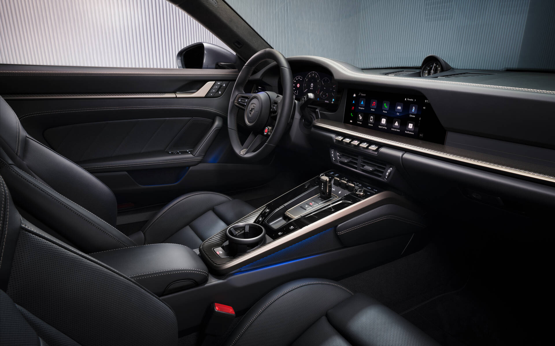 As for the cabin, the coupe is delivered as a two-seater, but rear seats are optionally available at no extra cost. The cabriolet is only offered in a 2+2 seat configuration. A number of Turbonite accents throughout provide beautiful contrast with the carbon fibre-rich environment. Adaptive 18-way Sport Seats Plus with memory function and "turbo S" lettering on the headrests complete the package.
