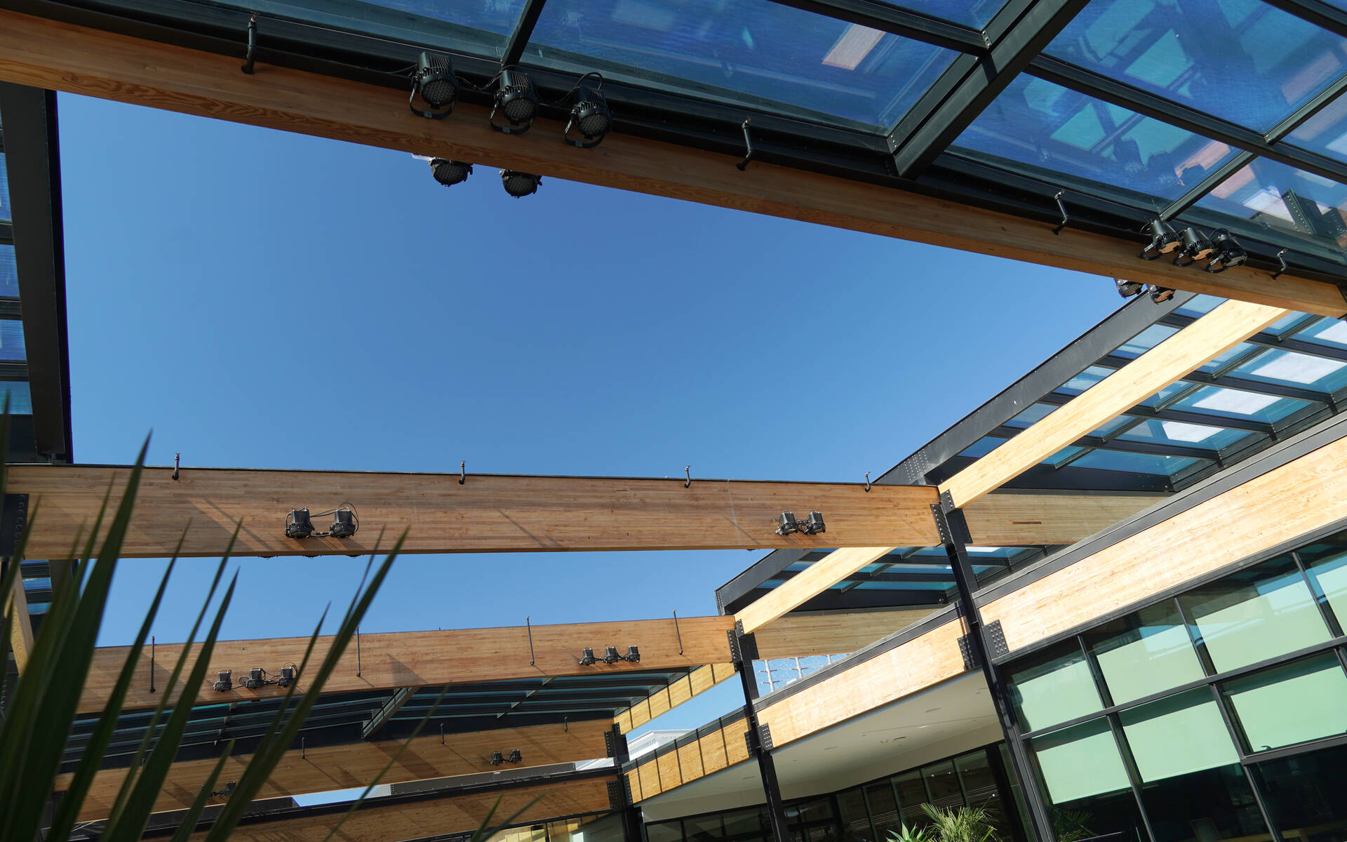 Covering 80,000 square feet, the complex sits in an industrial neighborhood flanked by train tracks and some of the busiest freeways in the country. Yet, it stands out for its light-filled architecture and connection to nature — a deliberate reflection of the Korean design philosophy of balance between work and the great outdoors.