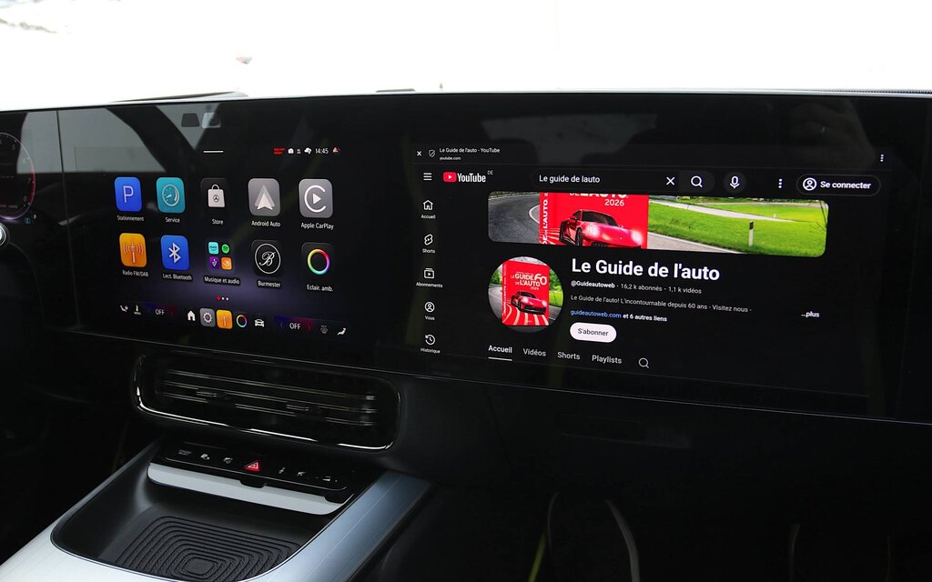 Another 14-inch display (optional) faces the front passenger. It can provide a large amount of information, but also allows you to stream videos on Disney+ or YouTube, for example. We tried it out and it worked generally well. And since Mercedes-Benz has thought of everything, a camera located in the middle of the dashboard cuts off the video feed as soon as the driver takes their eyes off the road to look at it. Don't even think about getting around this by putting tape over the camera: obstructing it will also cut off the video.