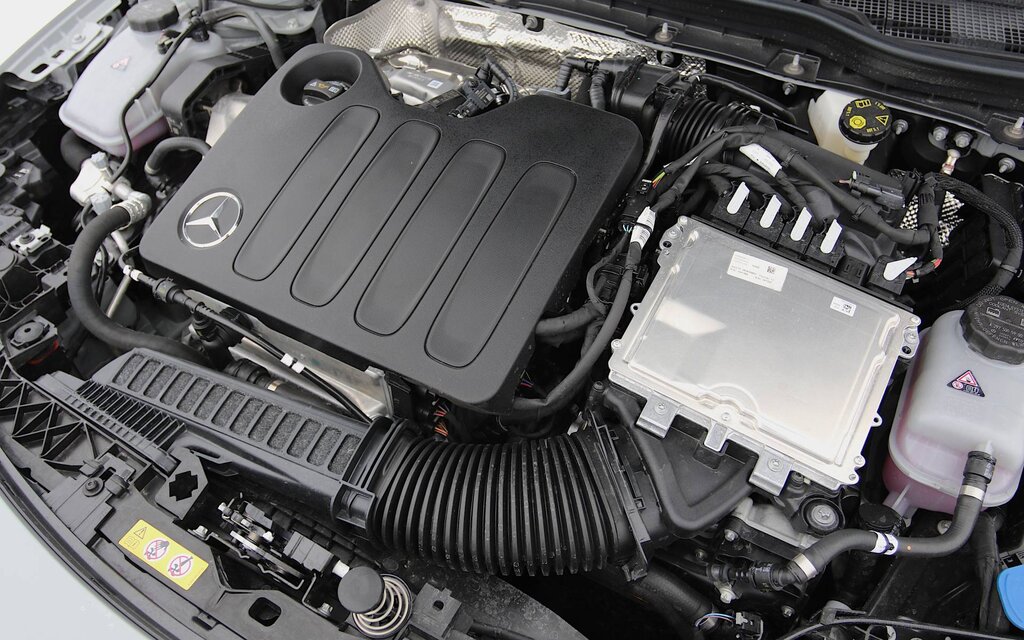 Another unique characteristic is the Miller cycle, which closes the intake valves earlier than in a conventional four-stroke engine. This results in less air entering the cylinder—and therefore less fuel since the stoichiometric ratio (the correct amount of air and fuel for each combustion cycle) must remain optimal. Consequently, the engine generates less power for the same displacement, but it also proves more fuel-efficient. To compensate for this, Mercedes-Benz has added an electric motor and a 48V mild hybrid system powered by a 1.3kWh battery.