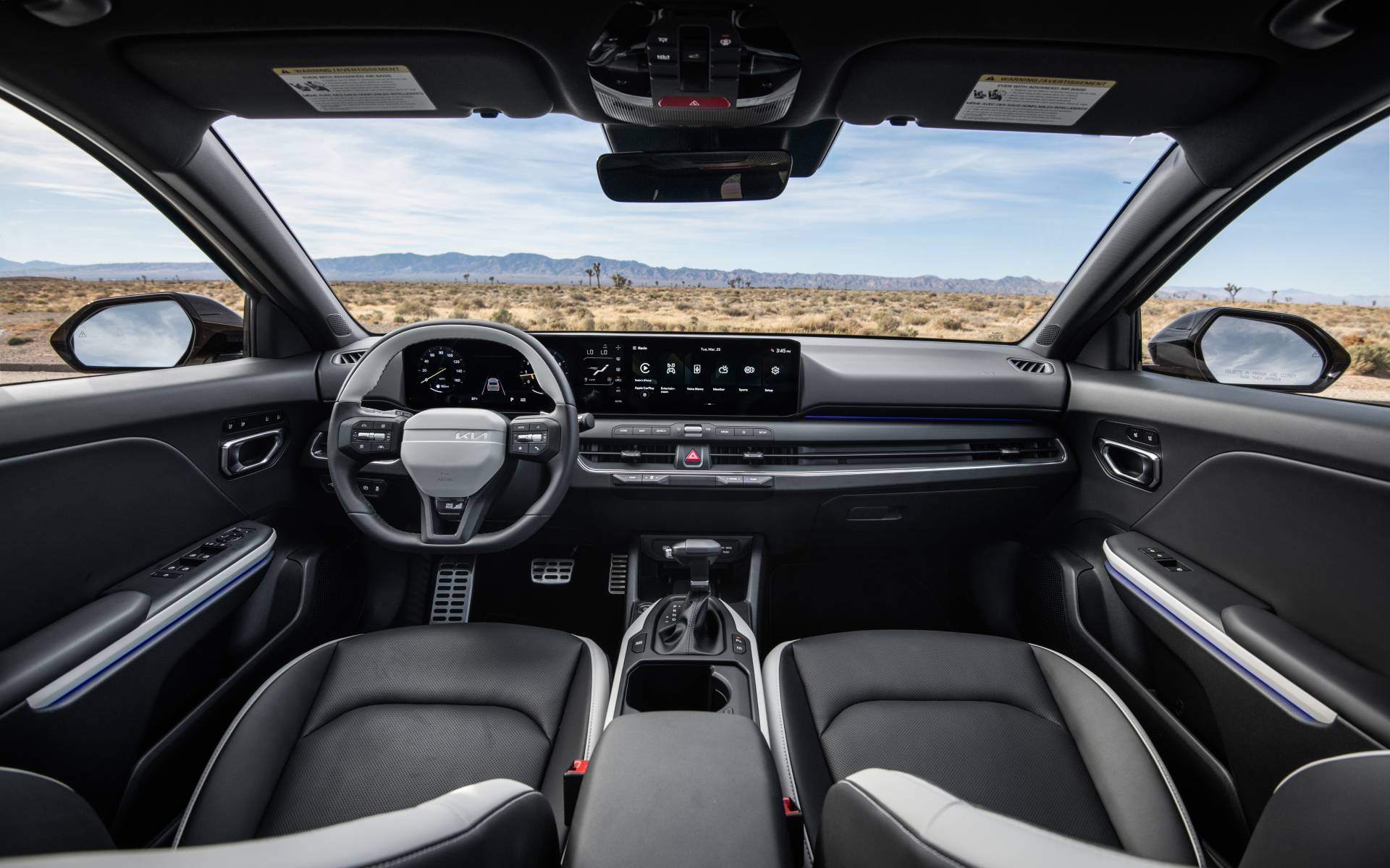 By the way, the model in the pictures is a Kia K4 GT-Line Hatchback, which features a three-spoke steering wheel, paddle shifters, 18-inch alloy wheels and numerous gloss black accents. Square LED projector headlights, a sunroof and 16-inch front brake discs are added to the GT-Line Turbo model.