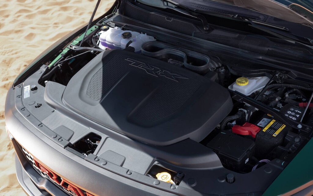 Under the hood lies the familiar supercharged 6.2-litre HEMI V8, except that it now produces 777 horsepower and 680 lb-ft of torque. The engine is paired with an 8-speed transmission. According to Ram, the TRX sprints from 0-60 mph (0-97 km/h) in 3.5 seconds and reaches a top speed of 190 km/h. The increased output is the result of new components and tuning including an updated engine management system.