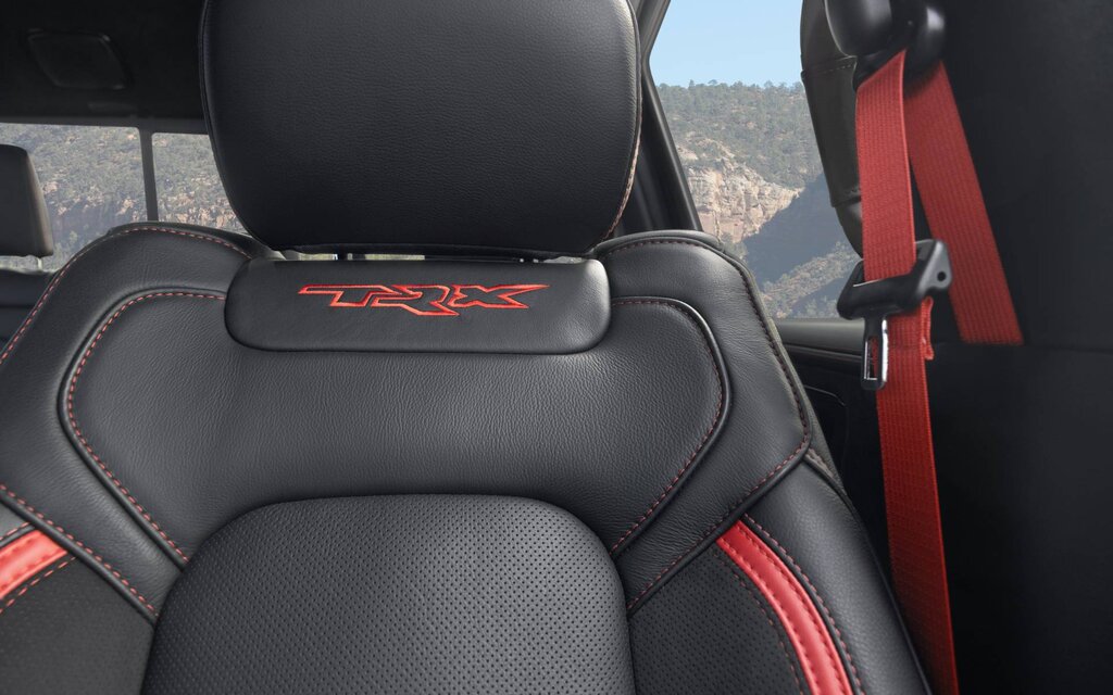 At the rear, darkened LED taillamps and integrated Blind Spot Monitoring are positioned alongside a large R-A-M badge and first-ever SRT badge on the tailgate (the TRX badge itself features a distinctive depiction of the famed apex predator). And don’t miss the aggressive Gloss Black five-inch dual exhaust tips.