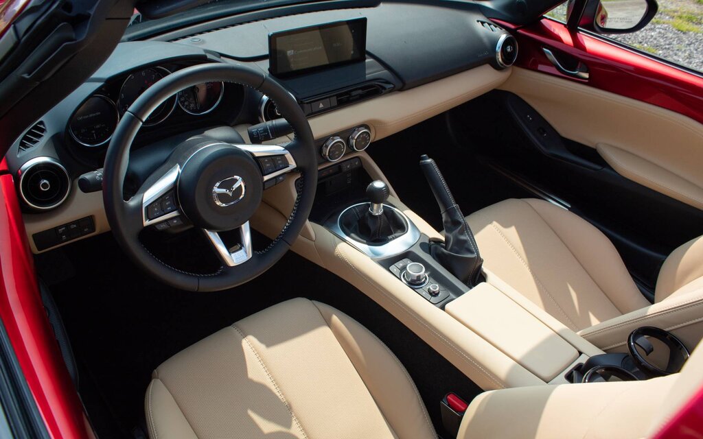 No matter which MX-5 you pick, the naturally aspirated 2.0-litre four-cylinder engine under the hood produces 181 horsepower at 7,000 rpm and 151 lb-ft of torque at 4,000 rpm. The manual transmission is the one we wholeheartedly recommend, but those who opt for the autobox (at no extra cost) still benefit from paddle shifters on the steering wheel.