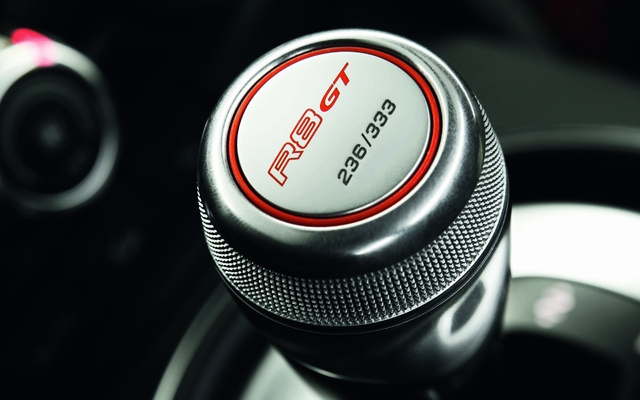 Levier de vitesses de la Audi R8 GT 2012 - Remarquez l'inscription indiquant qu'il s'agit de la 236e voiture d'une série limitée de 333.
