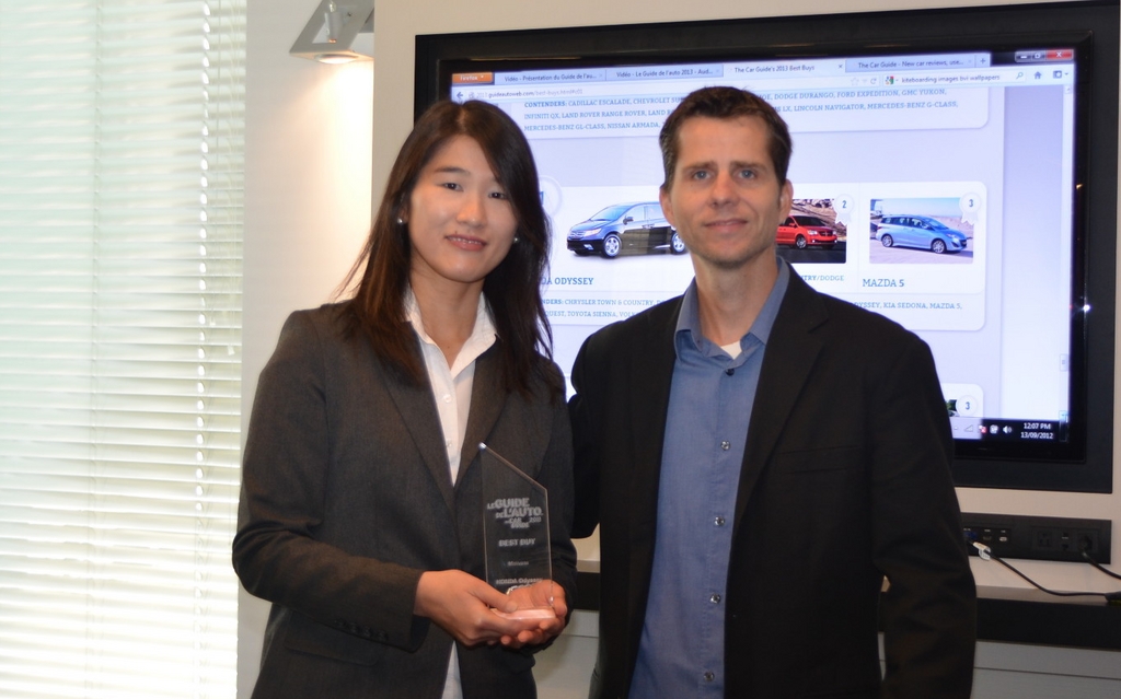 The Honda Odyssey received the 2013 award for the best minivan. Award presented to Maki Inoue by Sylvain Raymond.