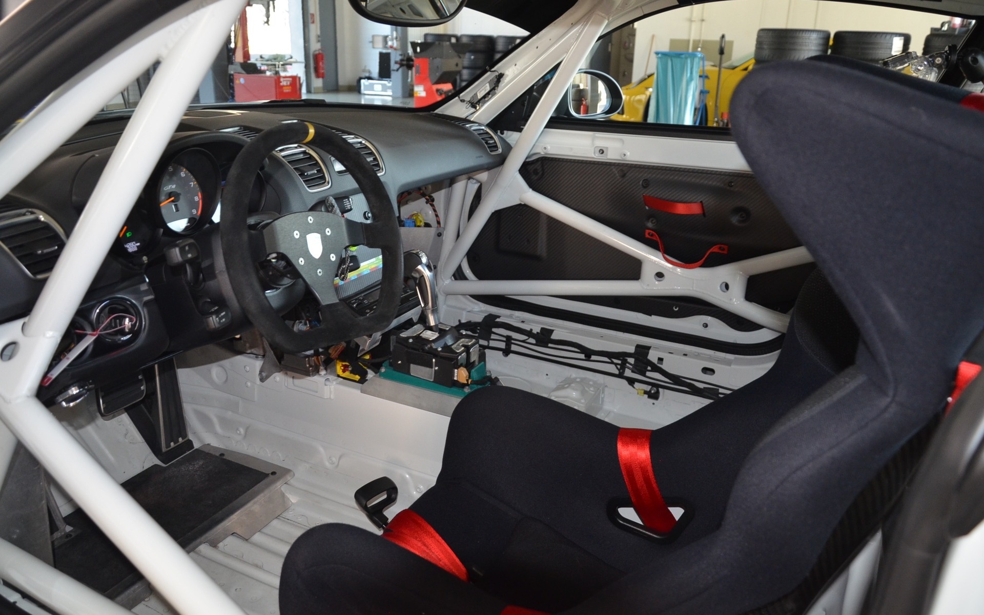 Porsche GT4 Clubsport MR - A view of the cockpit with its racing seat and six-point harness.