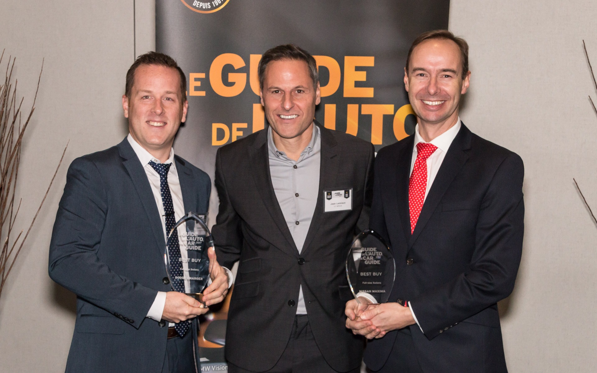 Jean Lemieux with Bradley Horn of FCA Canada (at left) and Michael Kopke of Nissan Canada Inc. (at right).