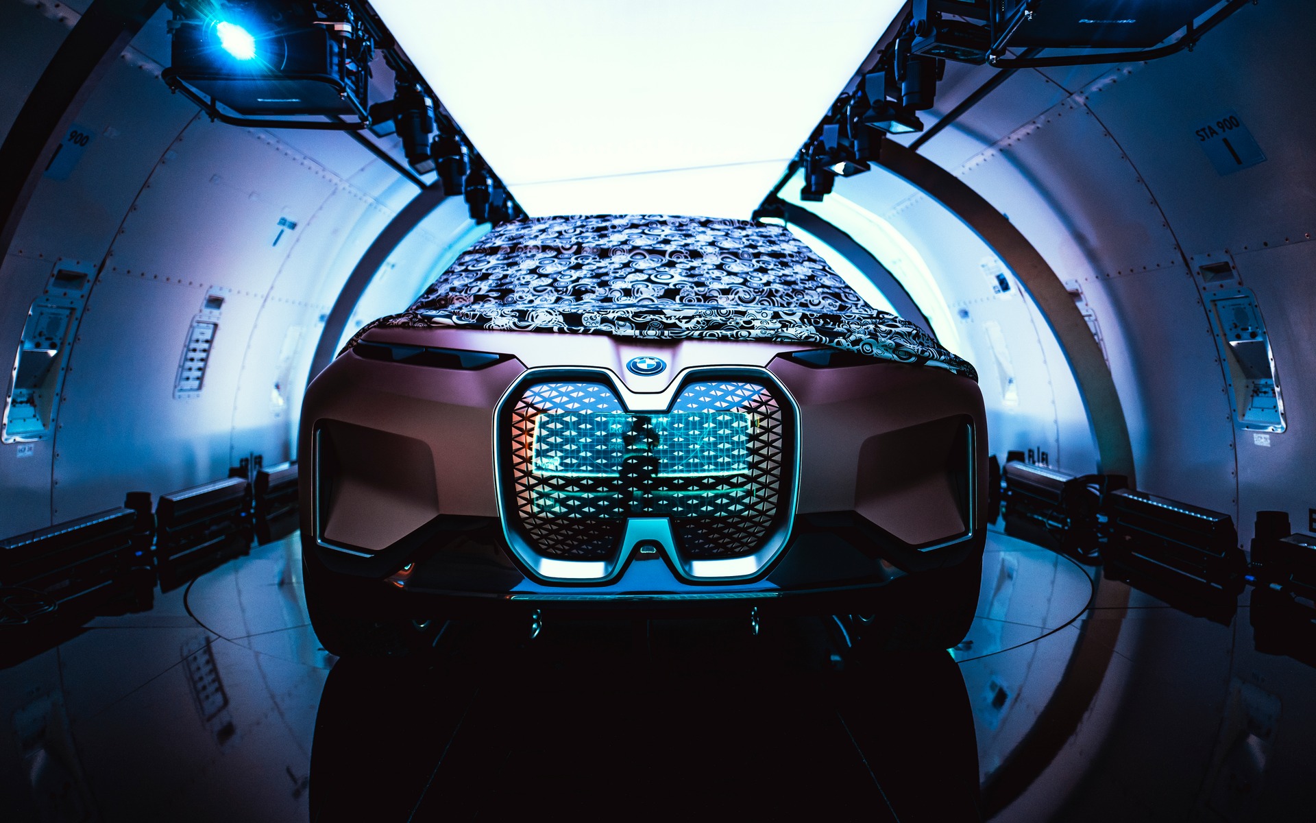 BMW Vision iNEXT Concept - The Vision iNEXT Concept also features a new treatment for the traditional BMW dual-kidney grille. Designed with 3D graphics, it is much taller on this vehicle and looks like a butterfly. This new design for the grille was created in order to accommodate the many sensors required for autonomous driving, many of which are located immediately behind and also harks back to the more vertical design of earlier BMWs.