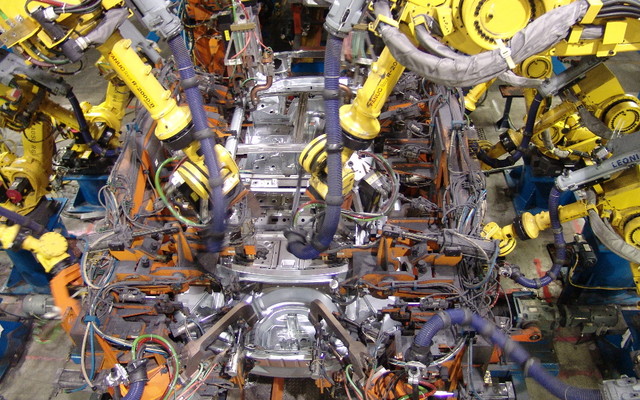 Lorsque les robots s’unissent pour souder la carrosserie au châssis, on ne peut être qu’impressionné! En tout, dans l’usine d’Oshawa on retrouve 734 de ces robots.