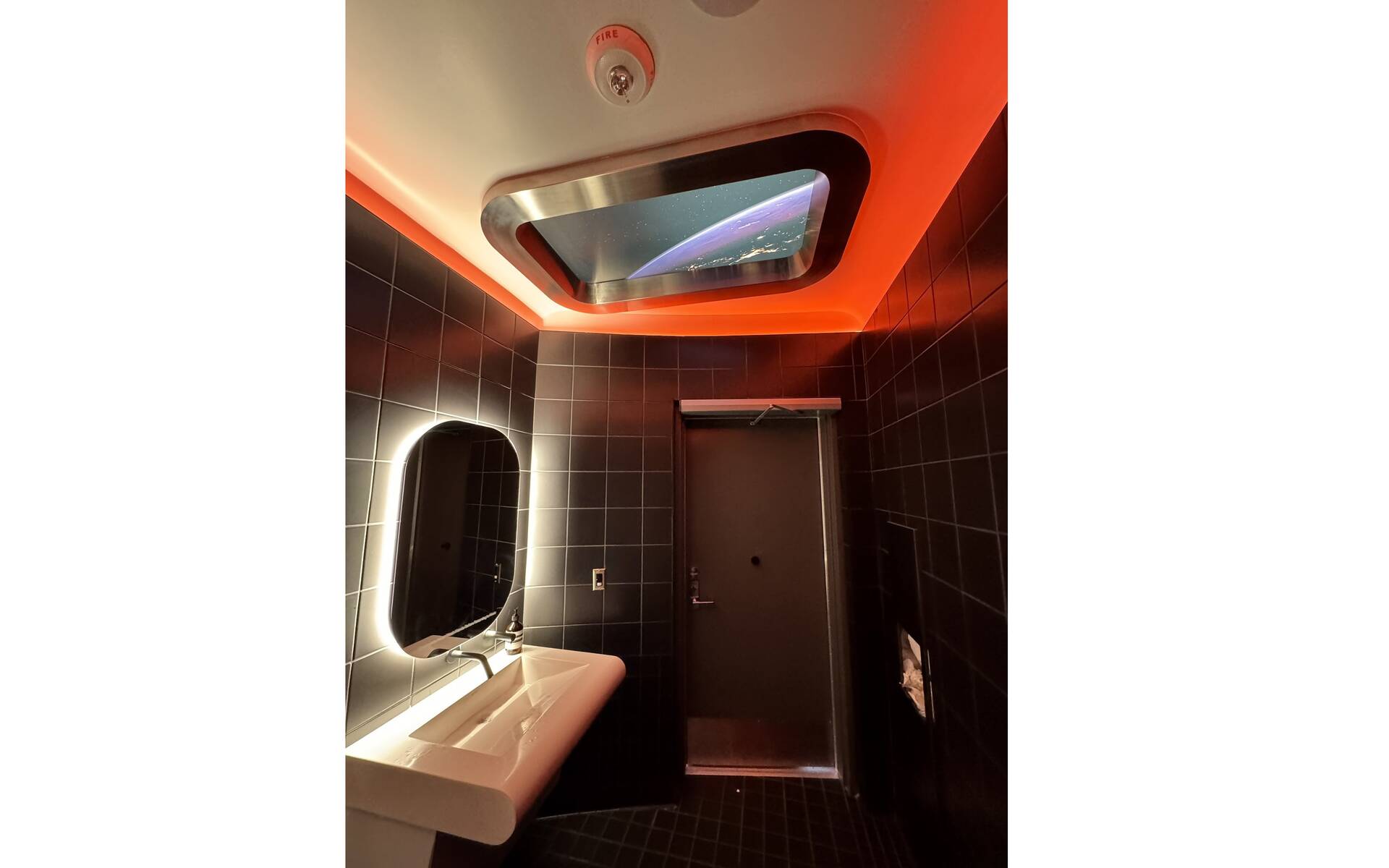 In the equally futuristic restrooms, it can feel like traveling in space.