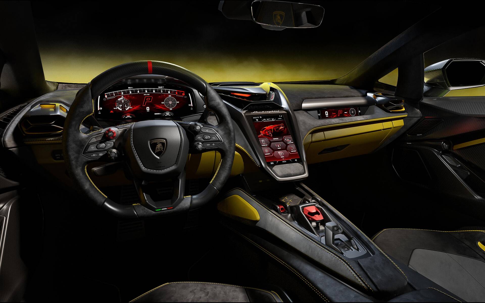 The hyper-design interior presents a new interpretation of Lamborghini’s ‘Feel like a pilot’ philosophy. The driving position and race steering wheel offer an incredibly engaging driving experience, while the three digital screens eliminate most of the physical buttons.