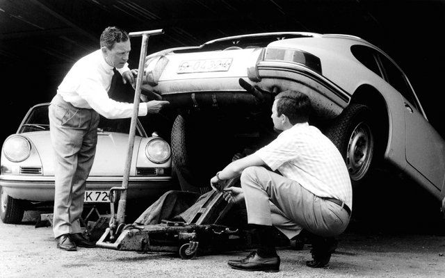 Ferry Porsche- left- worked with his son Ferdinand Alexander on the development of the future 911.